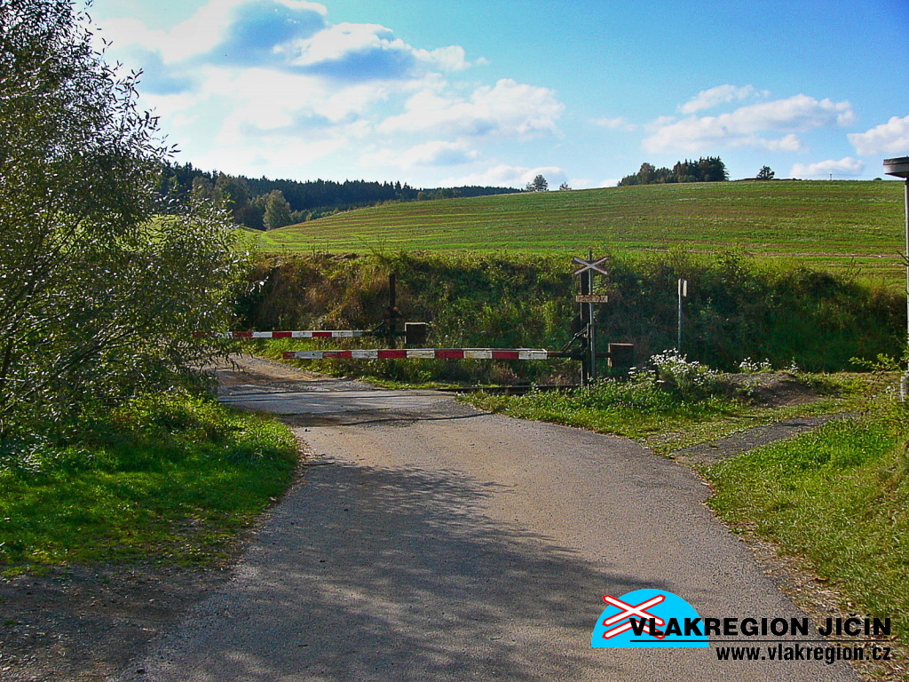 Bělá u Staré Paky - staropacká strana zastávky s původním přejezdem (9/2009)