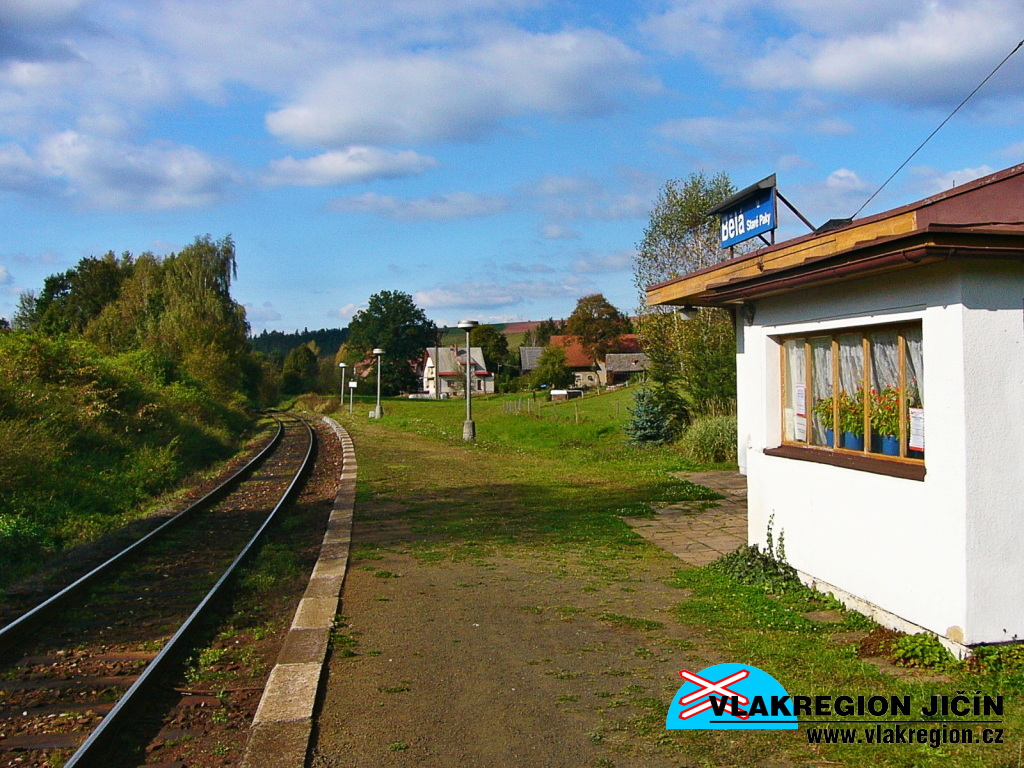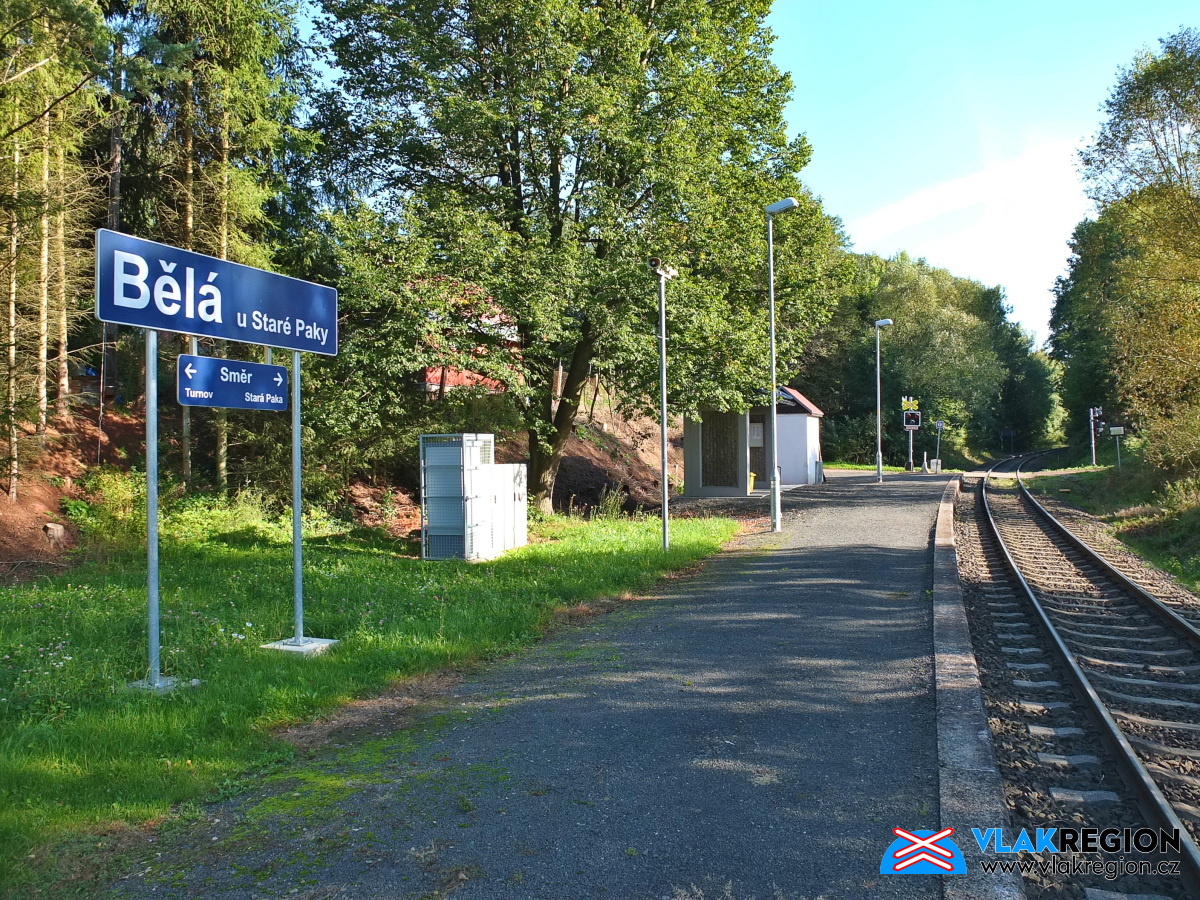 Bělá u Staré Paky je jednokolejná mezilehlá zastávka ležící v oblouku trati u přejezdu místní komunikace směřující z Bělé u Staré Paky do obce Nová Ves nad Popelkou.