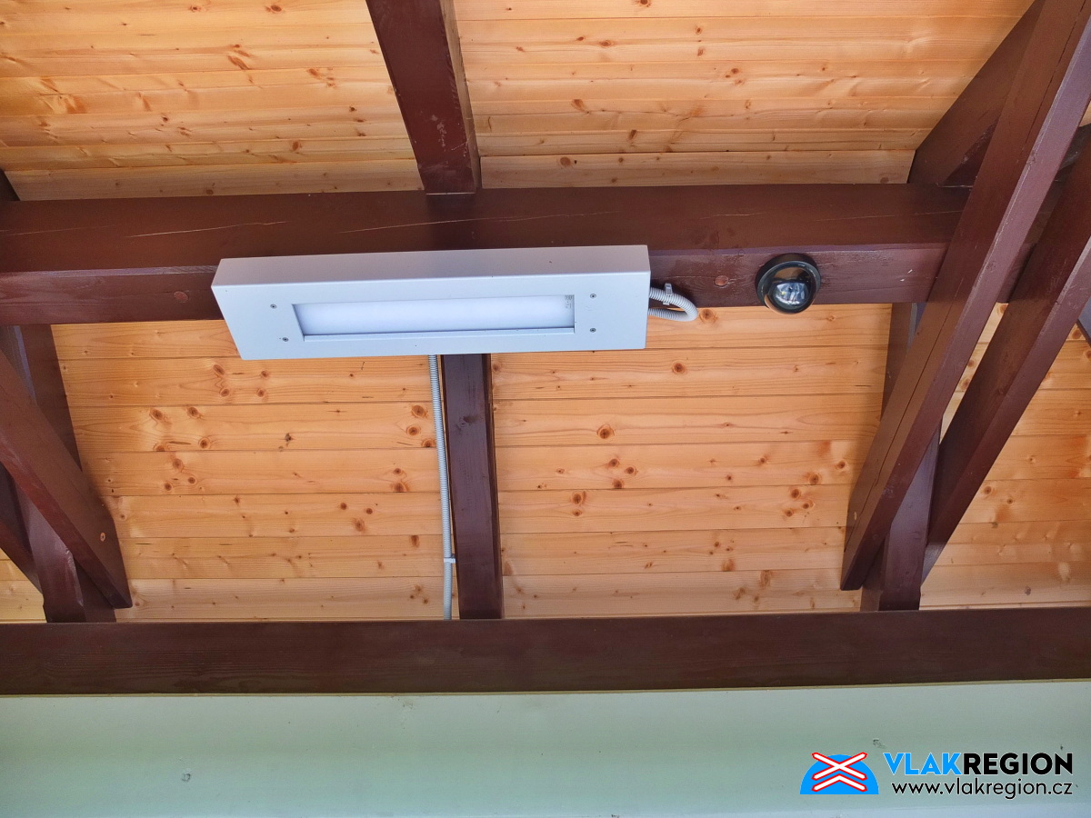 Bělá u Staré Paky - přístřešek má valbovou střechu se přesahem (9/2025)