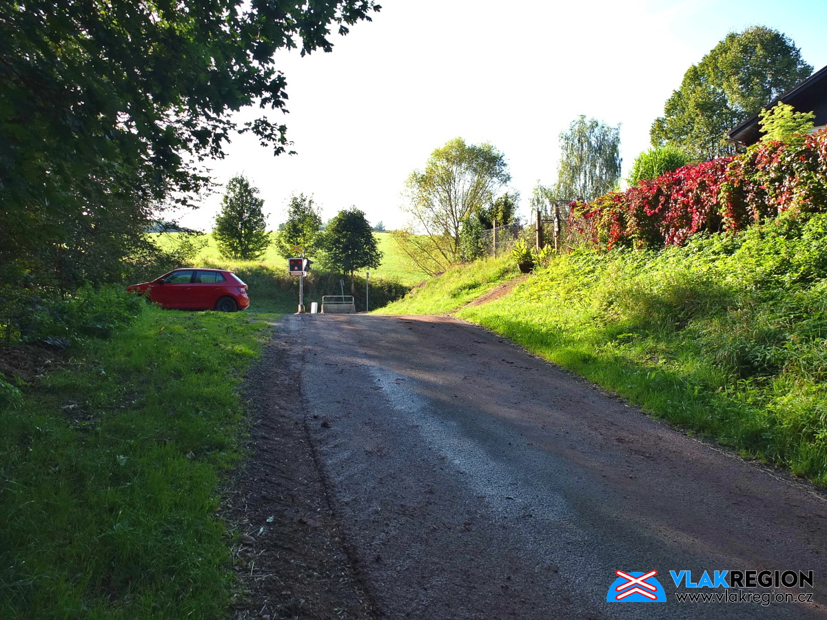 Bělá u Staré Paky - místní komunikace k přejezdu a zastávce (9/2025)
