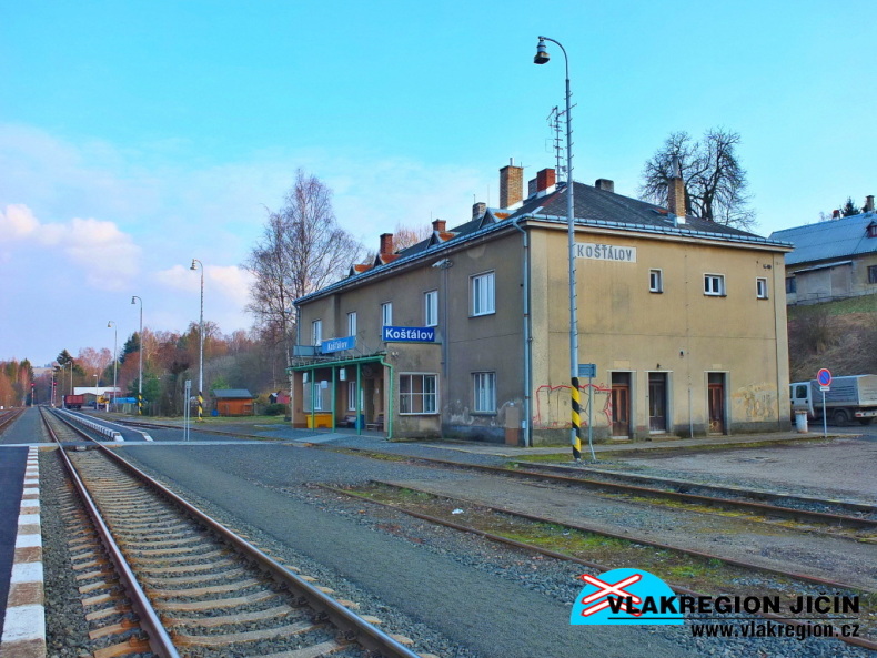 Nejprve bych si dovolil přednostně otevřít téma jména stanice, aby již z počátku měl čtenář jasno. Stanice byla vystavěna v roce 1858 na významné trati spojující Pardubice a Liberec a to na katastru obce Košťálov, nesla však až do roku 1945 jméno sousedního městyse Libštát. Původně byla stanice totiž plánována na pozemcích městyse Libštátu, ale jak uvádí kronika městyse: „…proti se stavěli občané, kteří jako důvod uváděli to, že železnice přivádí do okolí vojsko…“. Stanice Libštát tedy byla postavena dál ve směru k Liberci, na pozemcích obce Košťálov, která její výstavbu naopak uvítala. Zastupitelé Košťálova však celá léta žádali o přejmenování stanice, a to se povedlo až na devátý pokus. Neúspěšné žádosti o přejmenování nesou letopočet 1904 / 1910 / 1912 / 1919 / 1924 / 1927 / 1928 / 1931 a 1942, teprve rok 1945 přinesl úspěch. Samostatná zastávka Libštát ležící ve směru ke Staré Pace byla vystavěna a zprovozněna až po druhé světové válce 22. února 1948. Dále již budu i v historických souvislostech používat současné jméno stanice Košťálov a ctěný čtenář tak bude mít tímto jasno.
