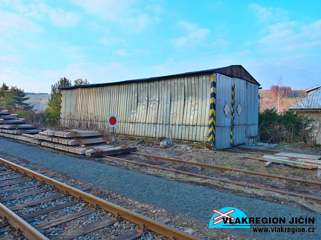 Stanice Košťálov - dnes 3 staniční kolej obsluhuje sklad a nákladiště (3/2016)