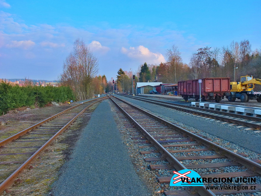 Stanice Košťálov - dvě předávkové koleje vlečky lomu (3/2016)