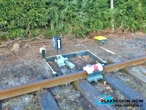Stanice Košťálov- výhybka dopravních kolejí na staropacké straně a trpacličí posunovací návěstidlo (3/2016)