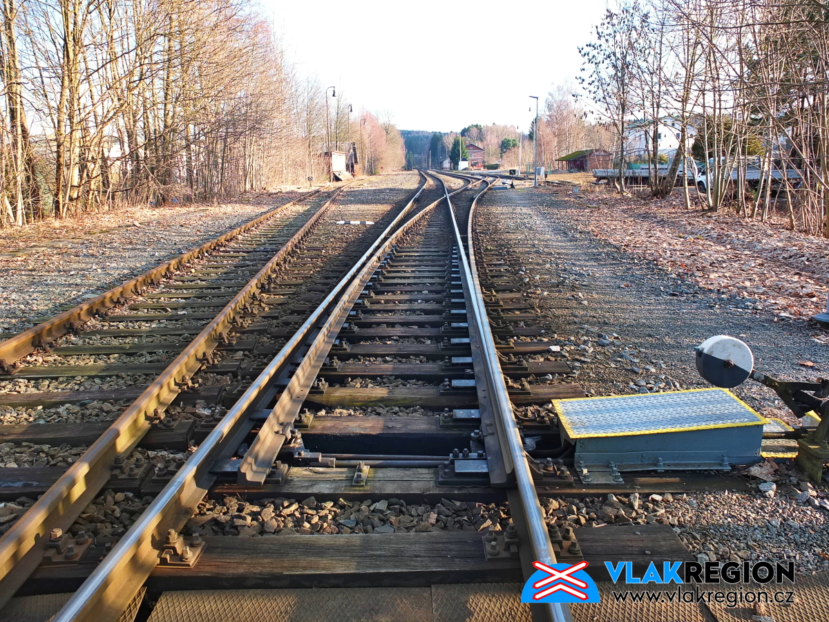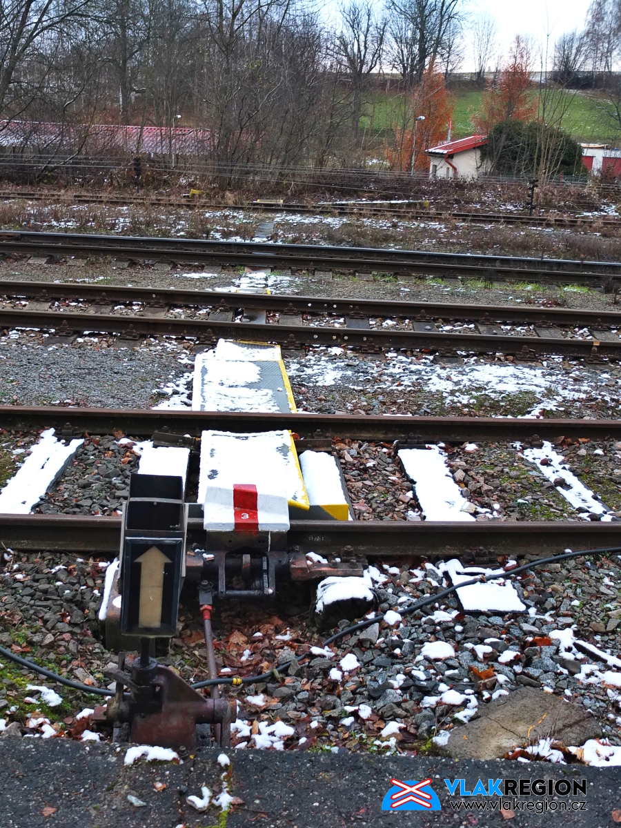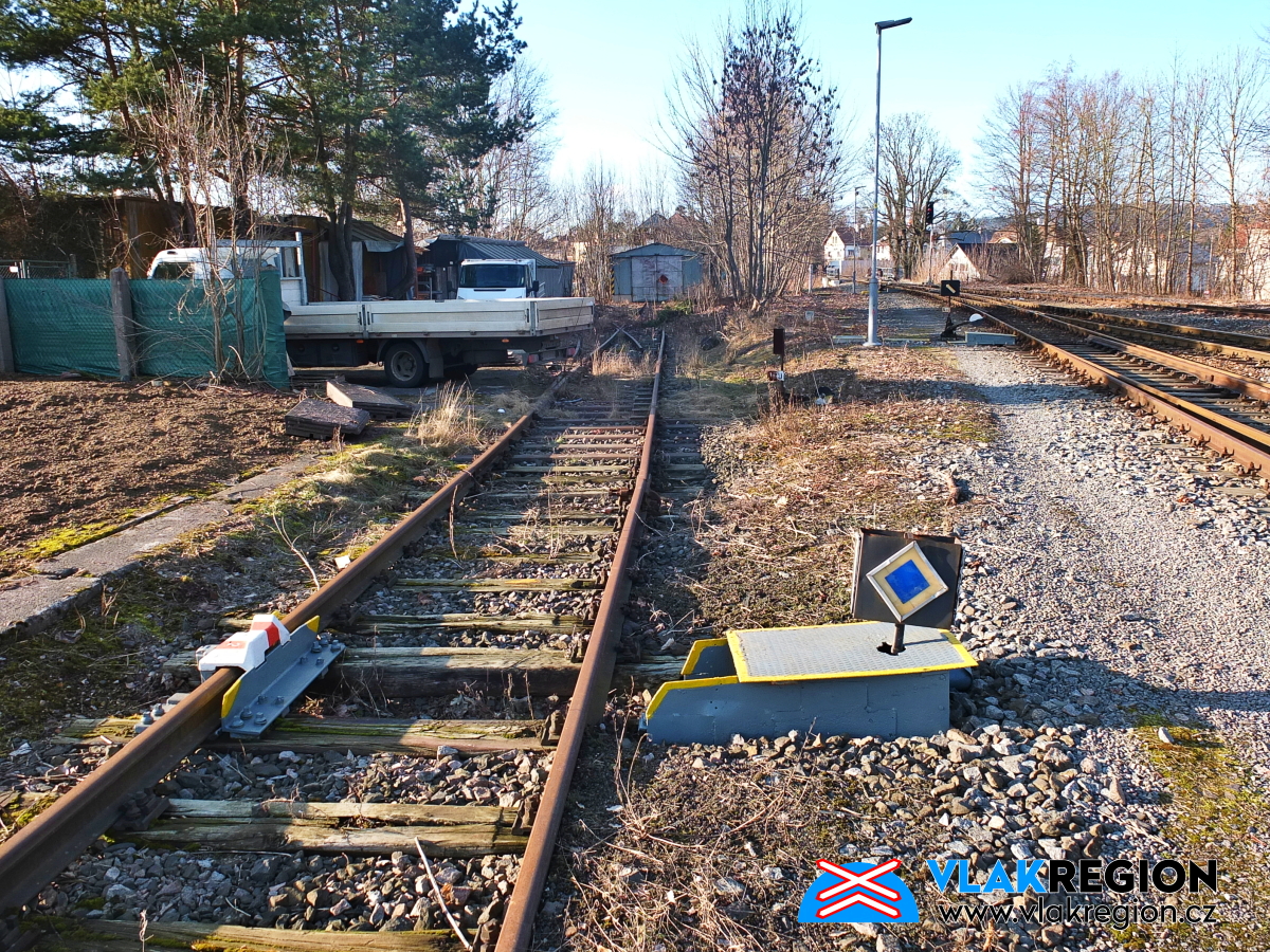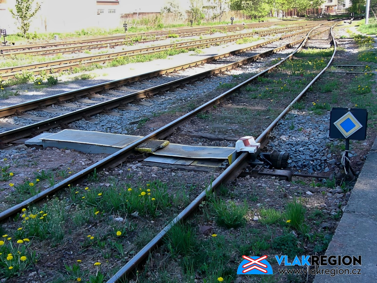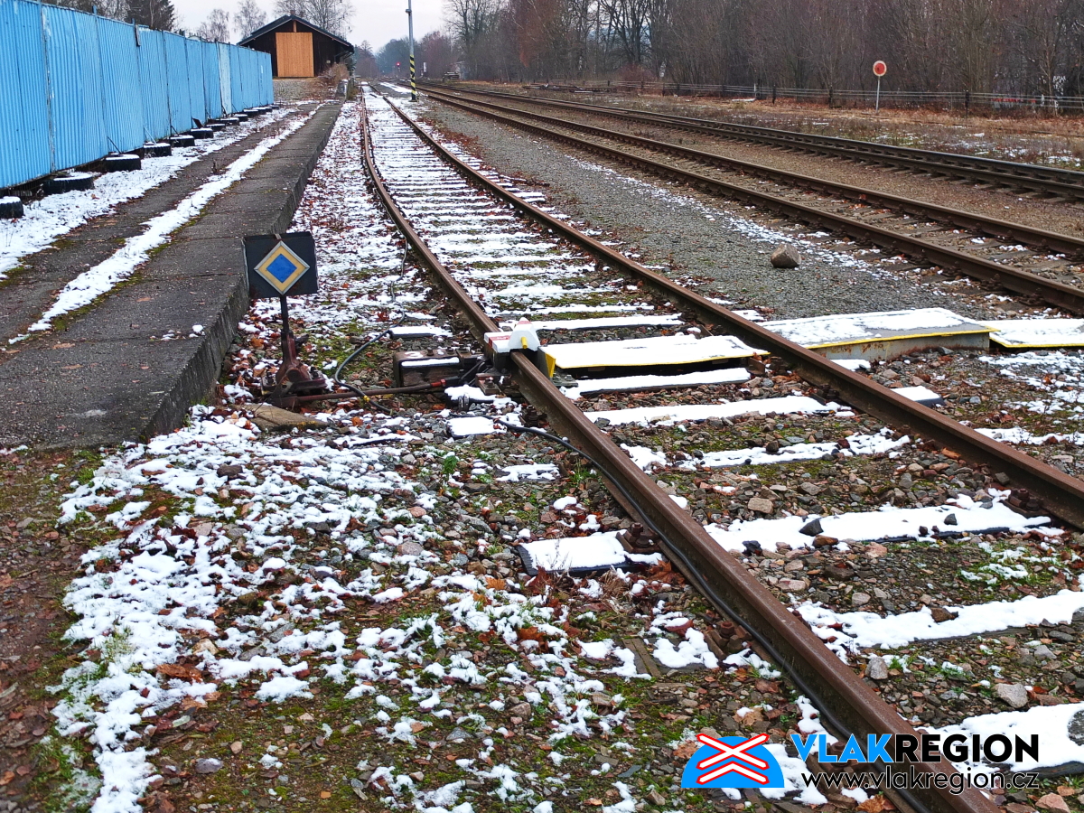Stanice Nová Paka - výkolejka na zarostlé odstavné koleji (2/2026)