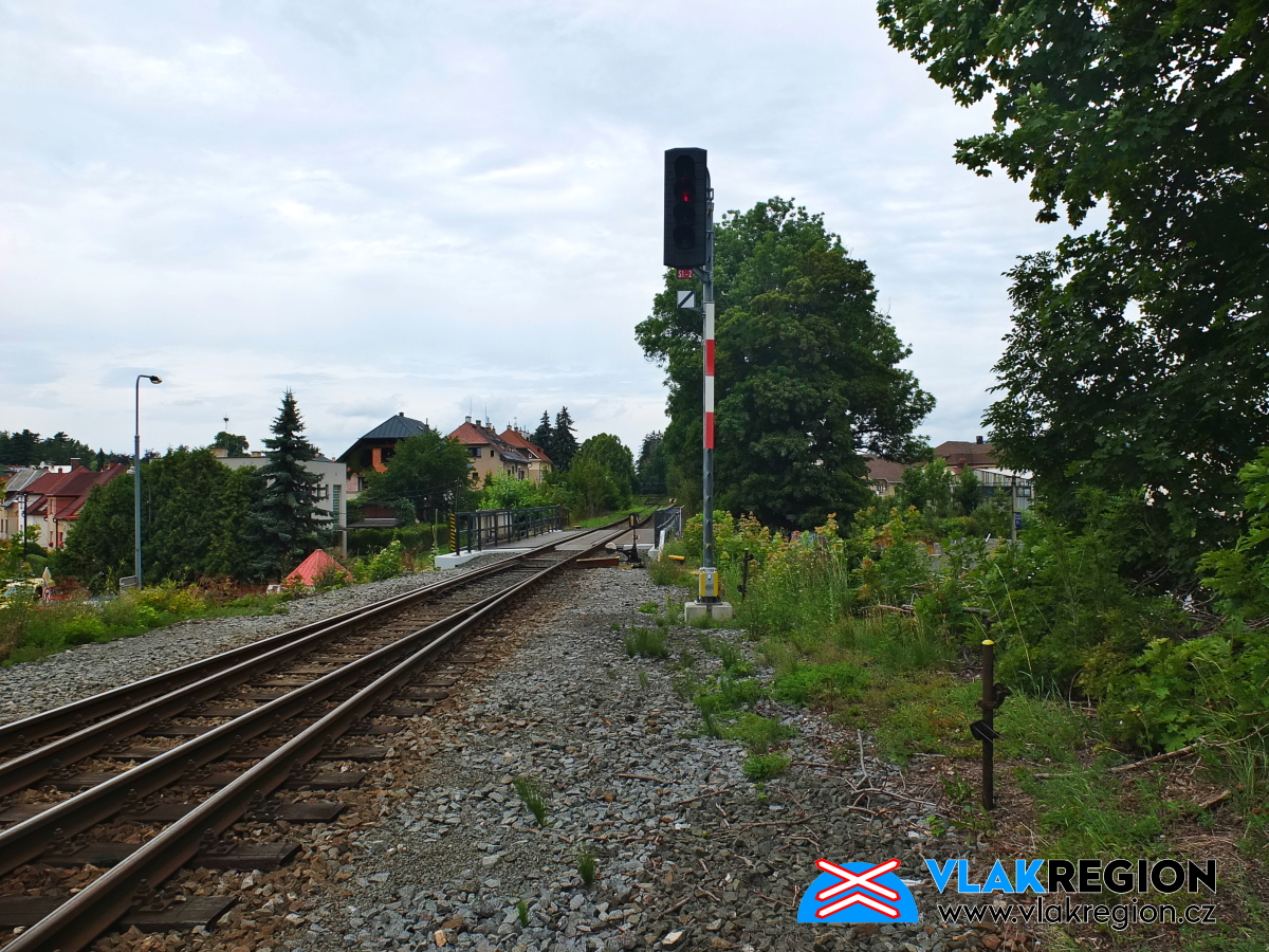 Stanice Nová Paka - skupinové světelné odjezdové návěstidlo je na zhlaví od roku 2012 (6/2017)
