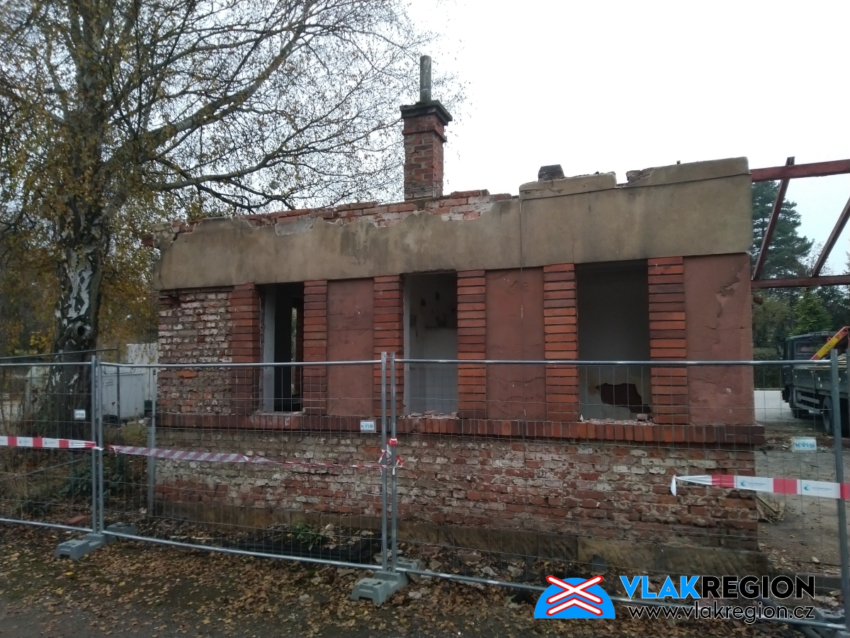Stanice Nová Paka - demolice přístavby ze 30. let (11/2021)
