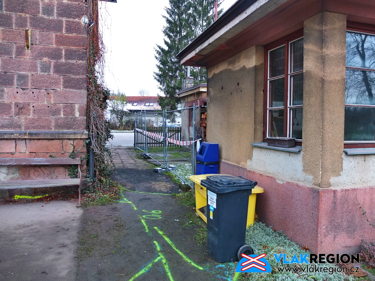 Stanice Nová Paka - vstup do domku je od skladu (11/2021)