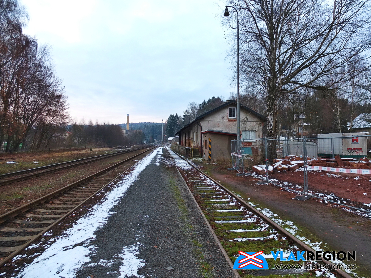 Stanice Nová Paka - na konci roku 2025 byl zbořen i druhý strážní domek na staropackém zhlaví (02/2026)