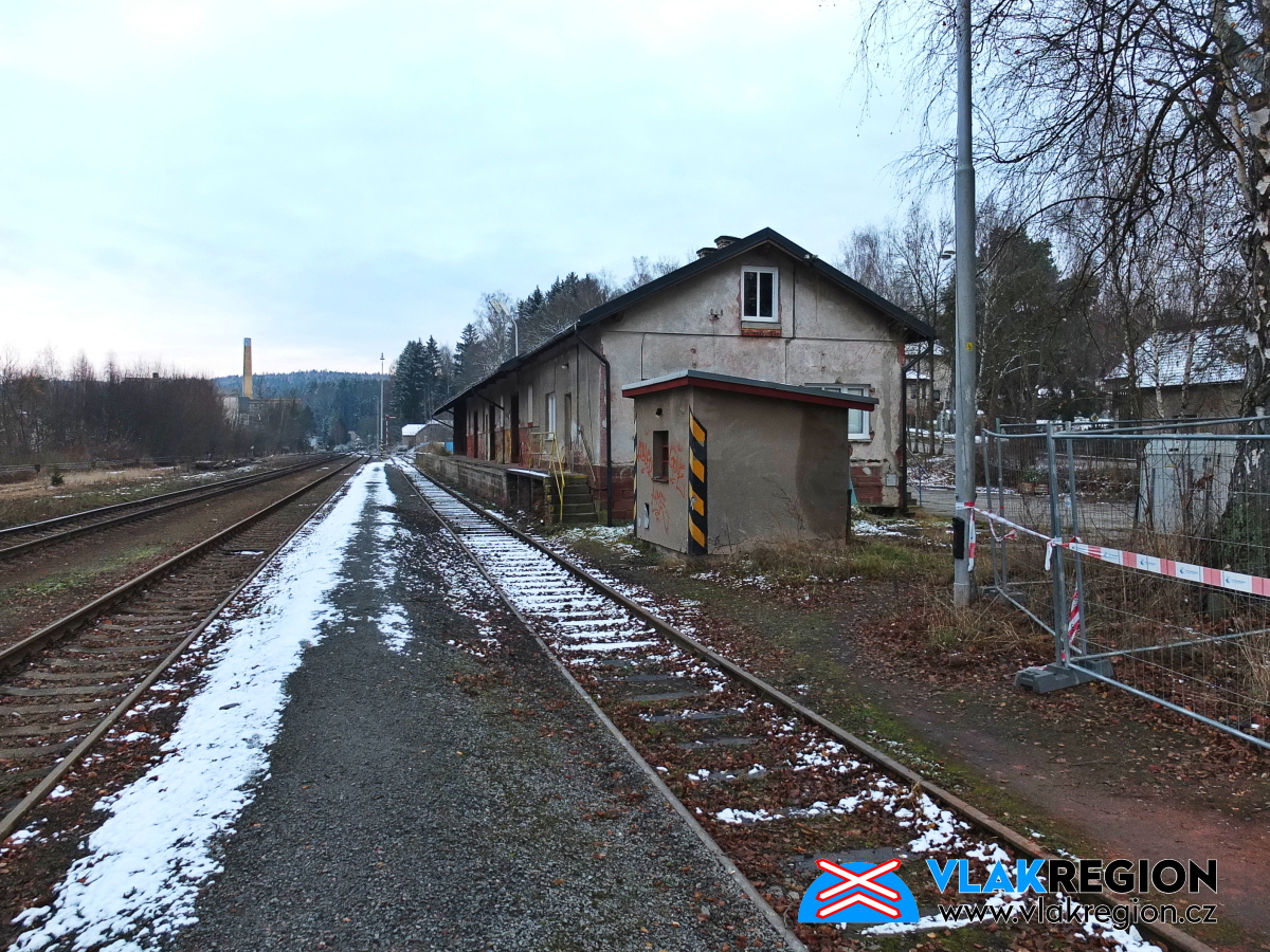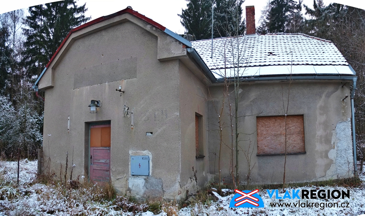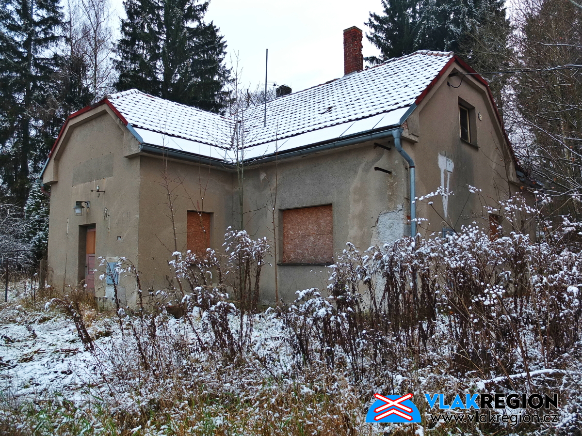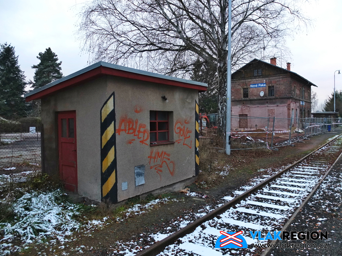 Stanice Nová Paka - na domek byl již vydán demoliční výměr, ale fyzicky byl zlikvidován až později (11/2021)