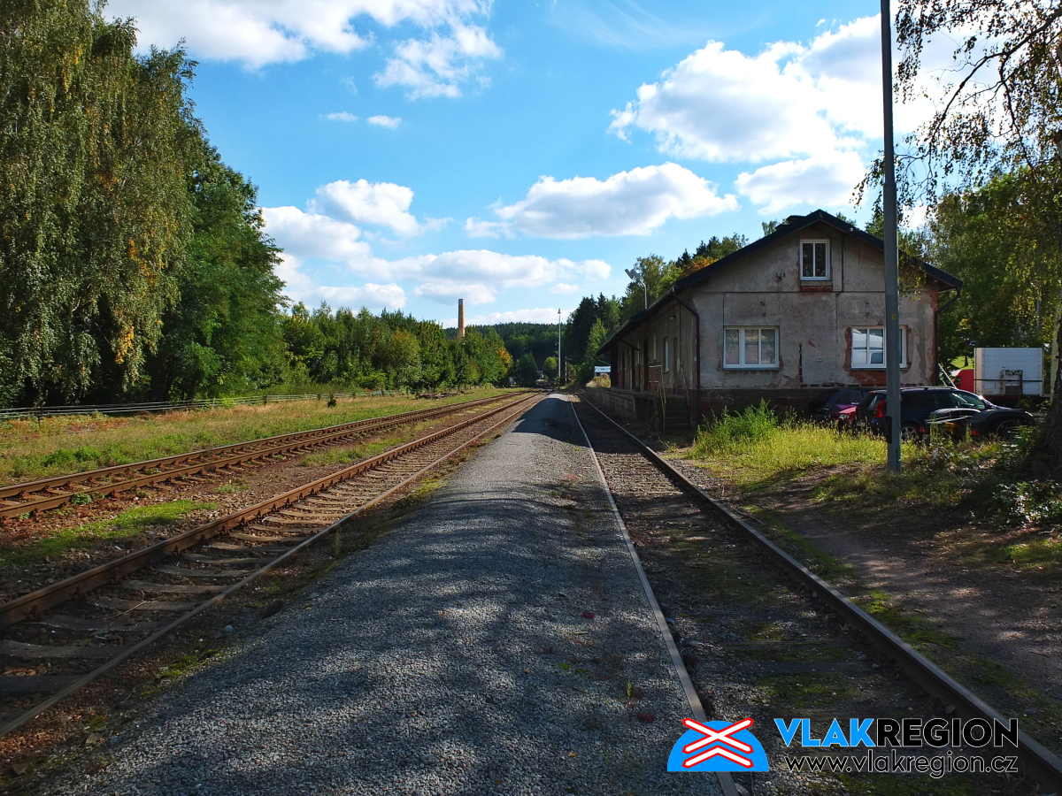 Krásně zrekonstruovaná výpravní budova (typu III.A) poskytuje cestujícím nejnutnější zázemí v podobě poměrně velké čekárny se spoustou laviček. Čekárna je umístěna v levé částí budovy a je z perónu přístupná nájezdovou rampou bezbariérově. Jízdenky se již ve stanici neprodávají od roku 2008, kdy byl na konci roku s přechodem na nový jízdní řád jejich prodej zastaven. Pro venkovní čekání slouží cestujícím zastřešená veranda umístěná podél celé čelní strany výpravní budovy. V pravé části nádražní budovy je umístěna dopravní kancelář pro výpravčího stanice. Za budovou stanice je menší parkoviště a u přístupového chodníku k perónu stojan na kola.