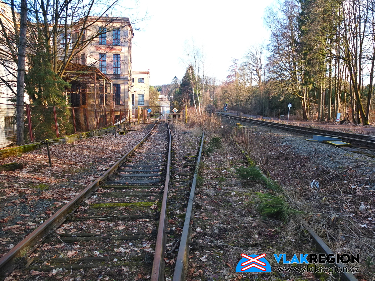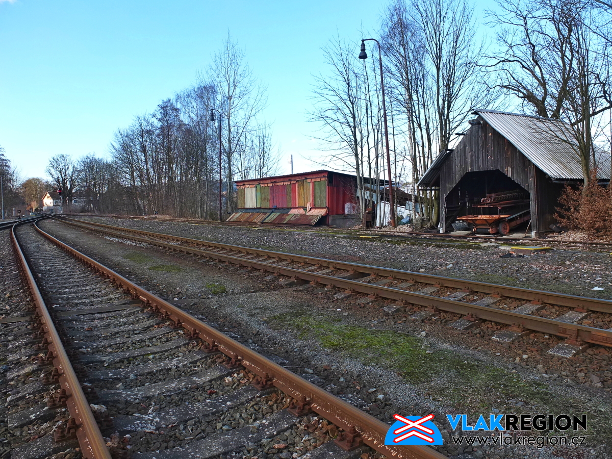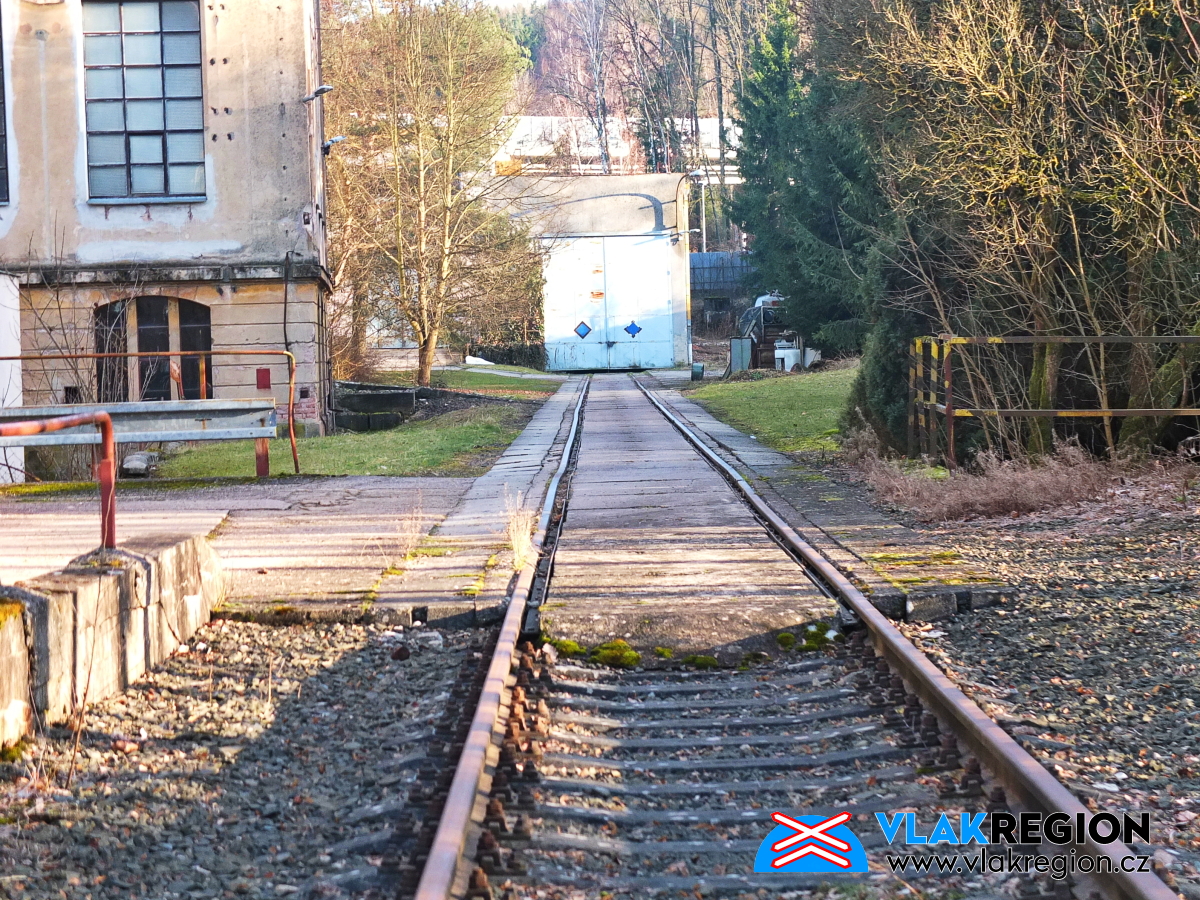 Stanice Nová Paka - na konci míří koleje do interiéru skladiště (2/2026)