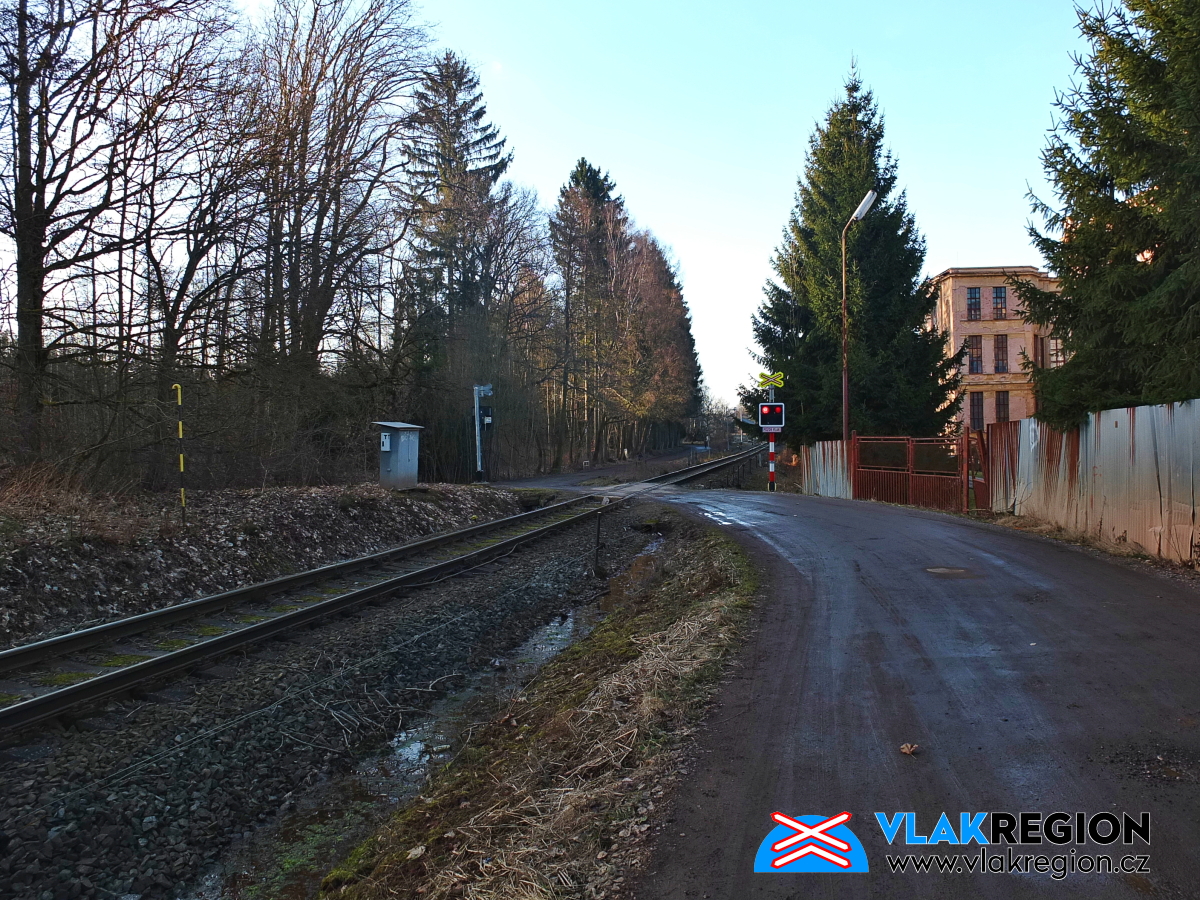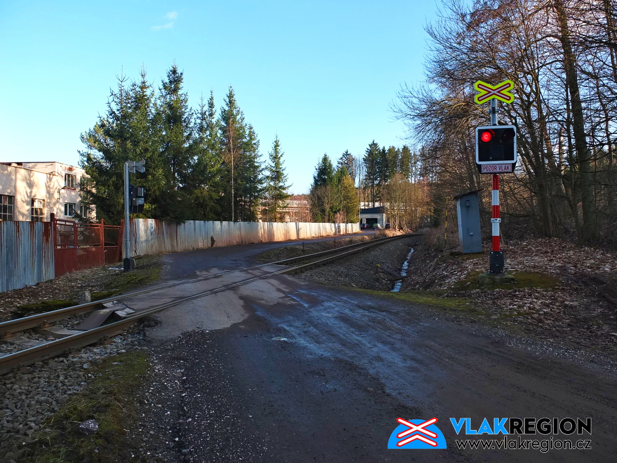 Stanice Nová Paka - přejezd stále ve výstraze, vlak jede od Ostroměře (2/2026)