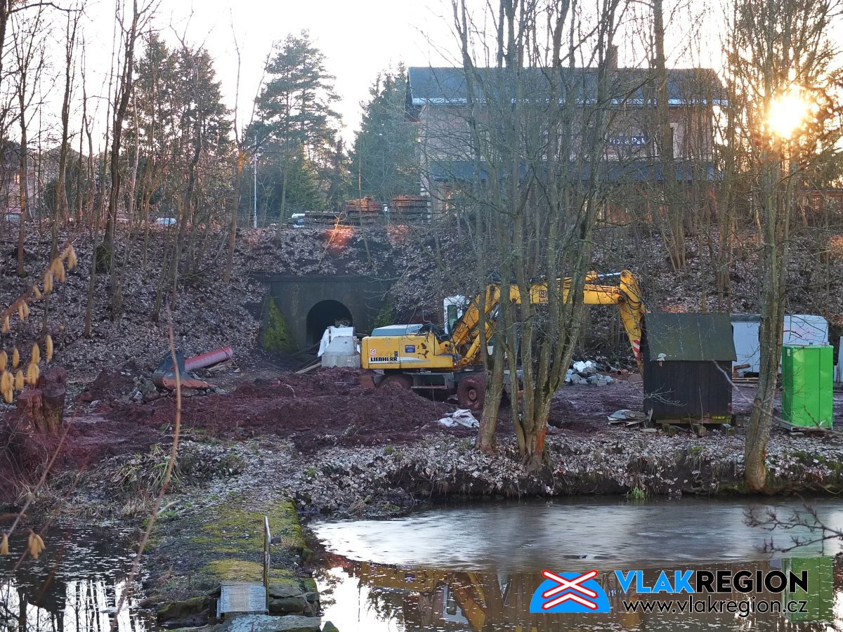 Stanice Nová Paka - vodoteč pod kolejemi vstupuje do areálu Velvety (2/2026)