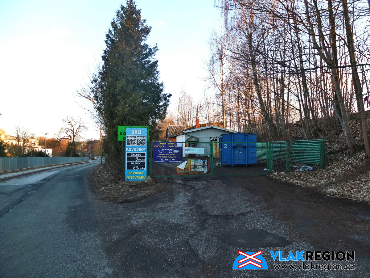 Stanice Nová Paka - příjezdová cesta k nákladišti u uhelky a k násypkám, dnes areál soukromé firmy (2/2026)