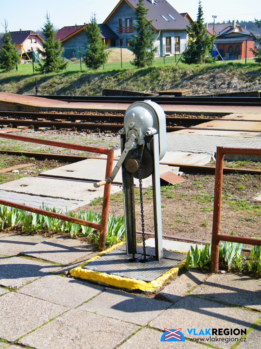 Stanice Butoves - mechanické závory a skupinové odjezdové návěstidlo na jičínské straně (4/2012)