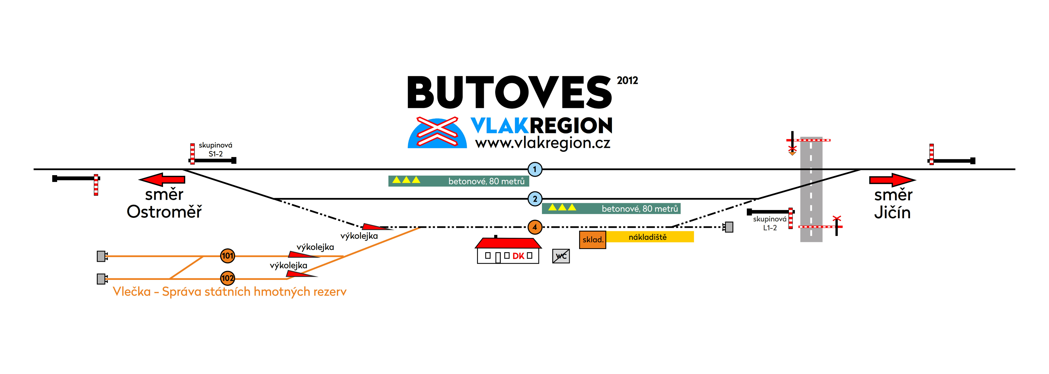 Stanice Butoves - jičínské zhlaví a dvojitý strážní domek (4/2012)