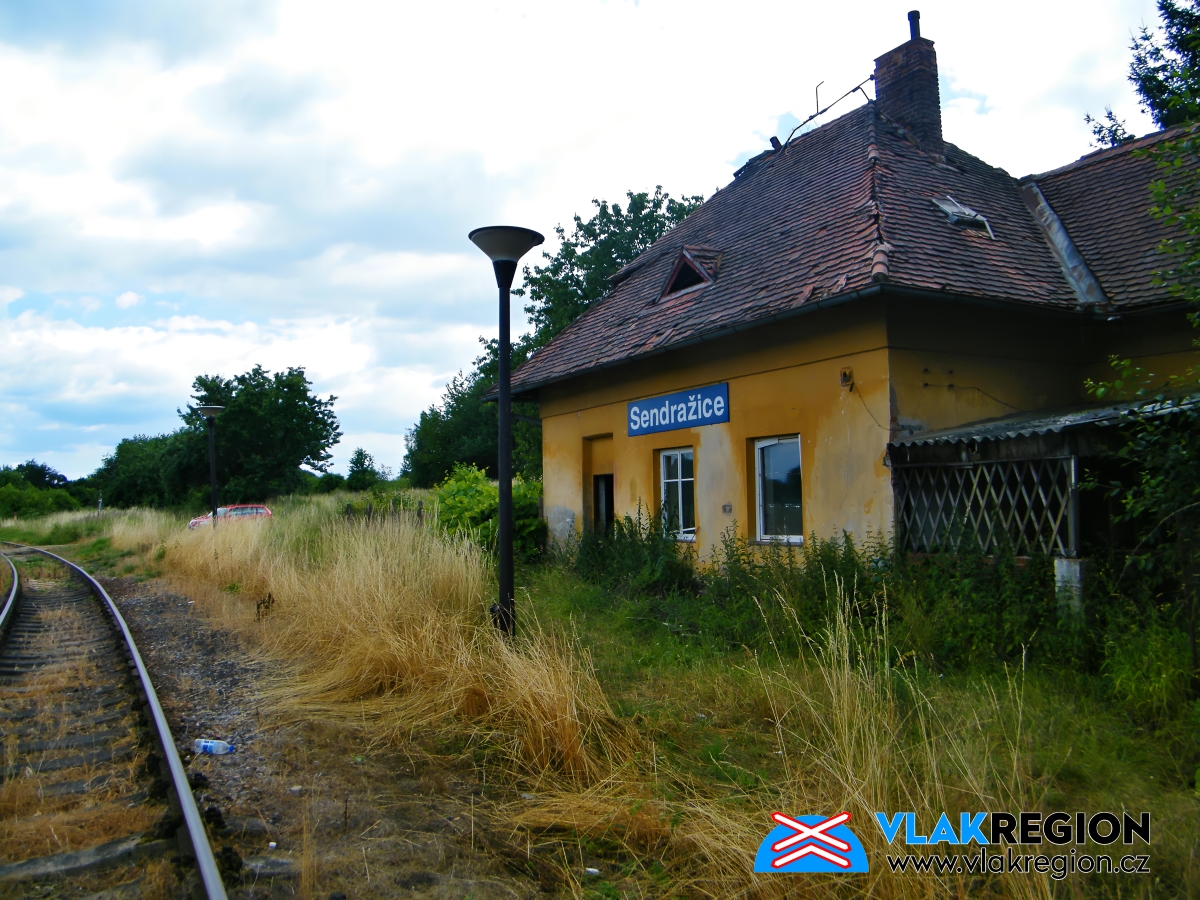 Se zavedením nového jízdního řádu 12. prosince 2004 je na trati definitivně zastavena i osobní doprava. V době ukončení provozu jsou Sendražice jednokolejná mezilehlá zastávka ležící v oblouku trati u přejezdu s polní cestou vedoucí od zastávky do obce Rodov. Kousek od zastávky prochází silnice k bývalým vojenským skladům a také druhá polní cesta k obci Sendražice. Obě obce zastávka obsluhovala a od obou leží shodně vzdálena cca 1 km. Nástupiště měla zastávka pouze sypané a osvětlené dvěma perónními lampami. Budova zastávky je v té době postupně opuštěna a díky nájezdům vandalů se z ní stává ruina. Konečná fyzická likvidace budovy zastávky a všech přiléhajících staveb proběhla v únoru roku 2016.