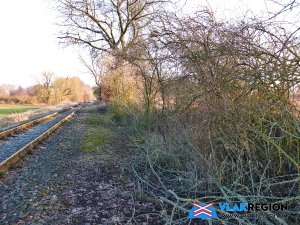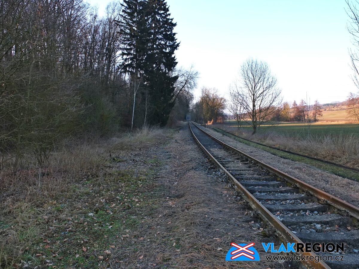 Zastávka Sendražice - krásně viditelný prostor pro manipulační kolej (2/2025)