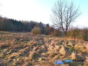 Zastávka Sendražice - vše již pohltila vegetace, pozůstatky po dláždění již nebyly nalezeny, zřejmě vše bylo v minulosti rozoráno (2/2025)