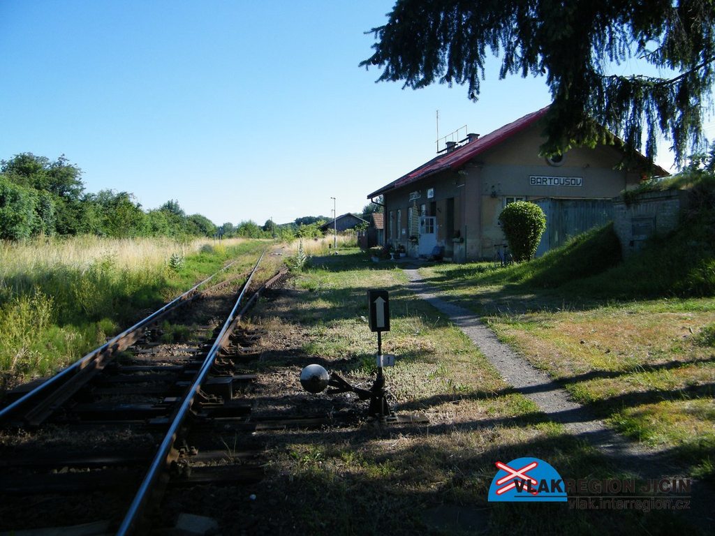 Zastávka a hláska Bartoušov je bývalá čtyřkolejná stanice s nákladištěm, ležící z části v oblouku a z části v rovném úseku trati. V současné době je po snesení a vyloučení kolejí pouze jednokolejnou zastávkou. Historicky však byla z počátku stanice přidružena k obci Žitětín a pojmenována po poměrně vzdálené obci Jičíněves a teprve později dostala jméno po vsi Bartoušov. Sloužil zde přednosta stanice a výpravčí se závorářem. V dnešní době je kolejiště stanice již zrušené, staniční kolej č. 3 je kompletně vytrhaná a manipulační koleje u budovy jsou návěstí vyloučeny z provozu. Na nymburské straně jsou pak odstraněny výhybky, které zaúsťovaly manipulační koleje do trati.