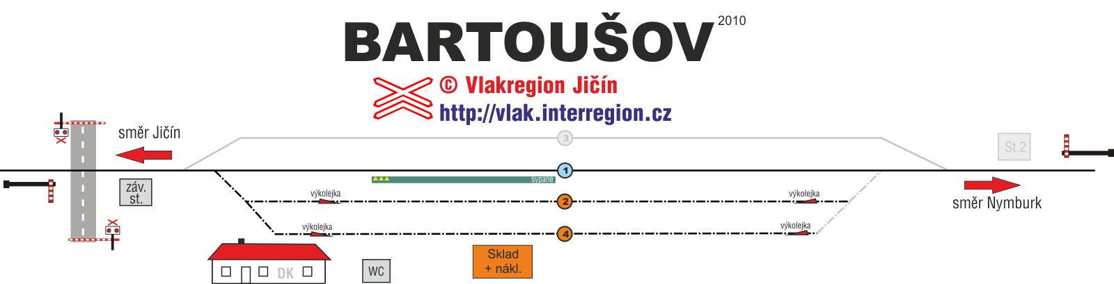 Mapa stanice Bartoušov pro další použití ve formátu PDF. © Vlakregion Jičín