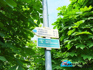 Turistický rozcestník u přejezdu na libuňské straně (6/2016)
