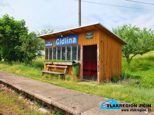 Dnes již neexistující dřevěná drážní bouda na zastávce Cidlina (2010)