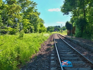 Konec zastávky na libuňské straně a pěšina k asfaltové silnici a přejezdu
