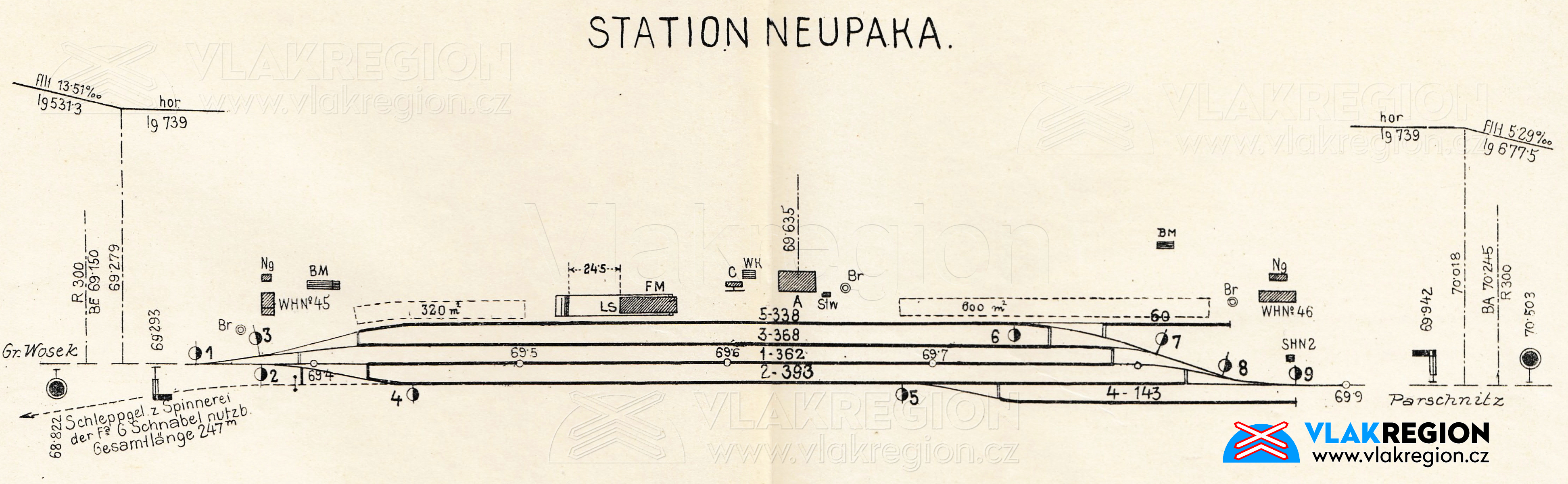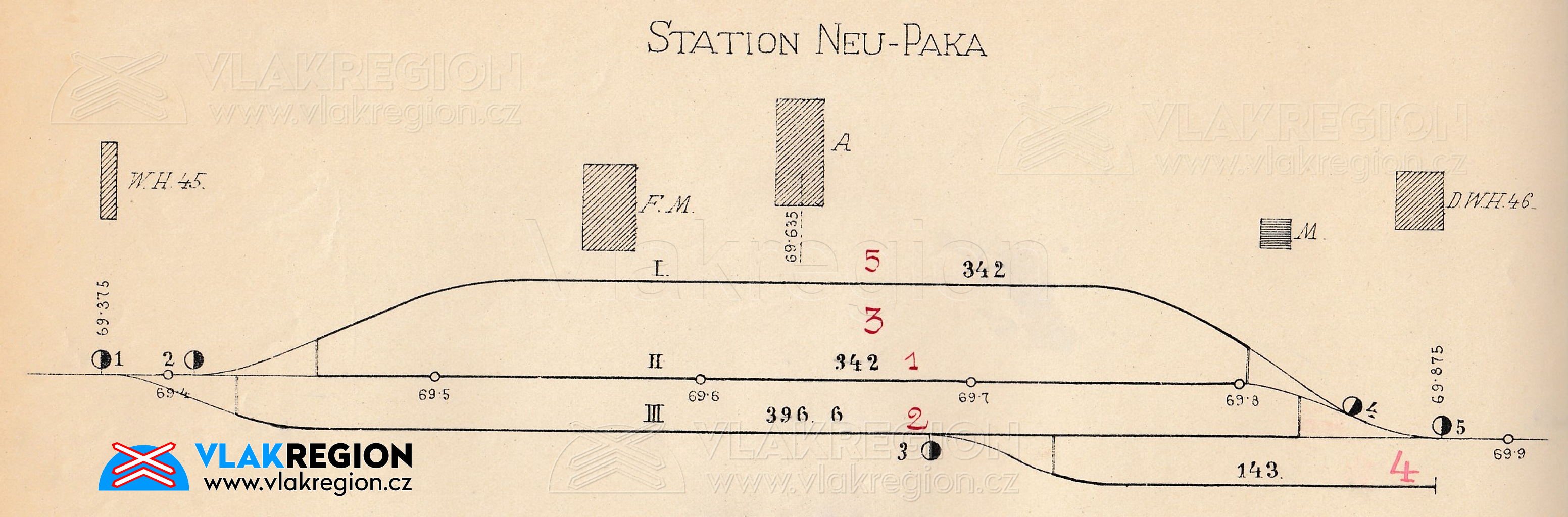 Schématická mapa stanice Nová Paka z roku 1911 (sbírka Zdeněk Hrdina)