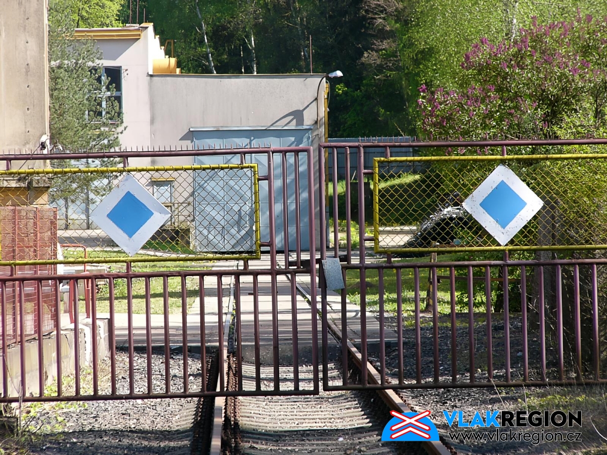 Stanice Nová Paka - pohled skrz vrata do areálu firmy (2/2026)