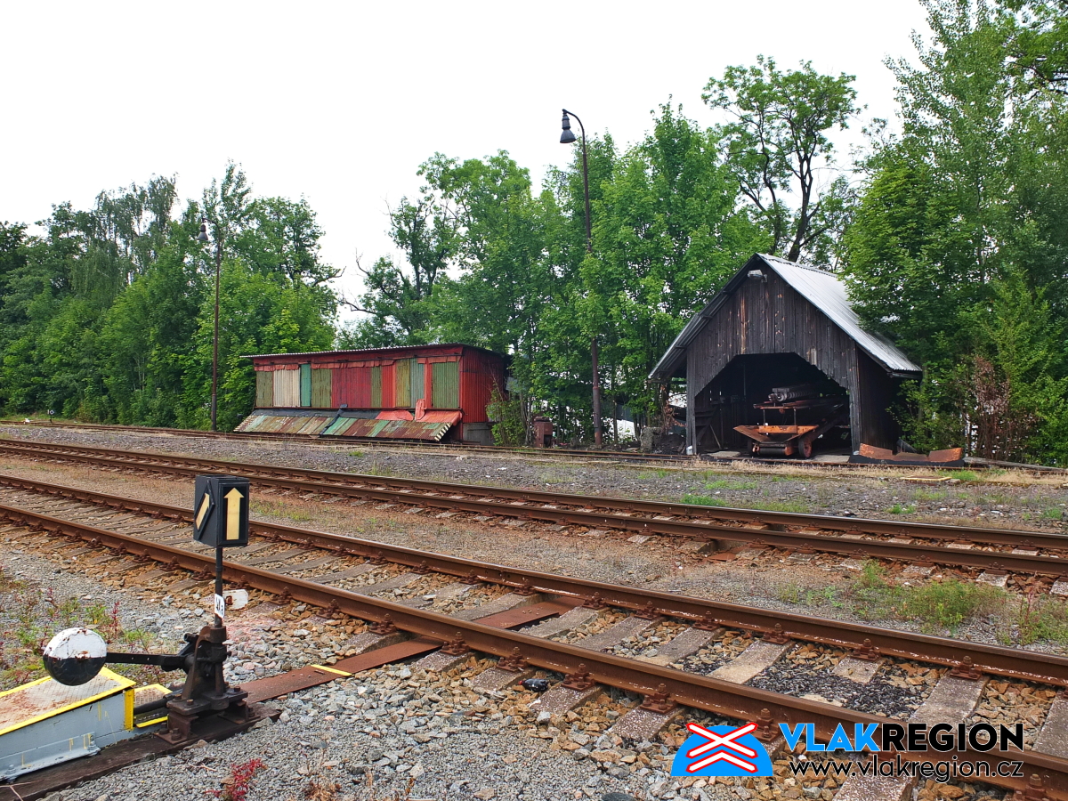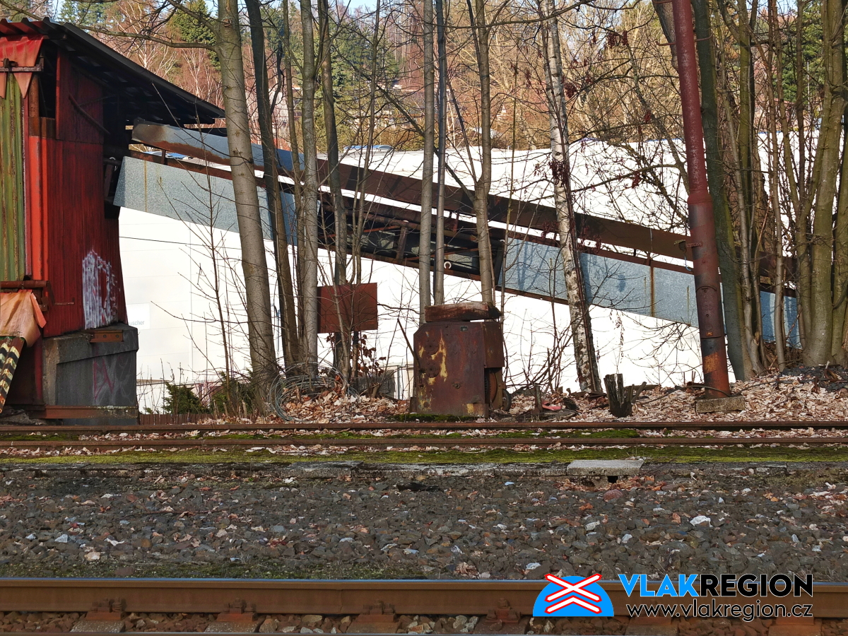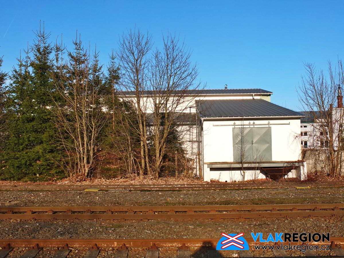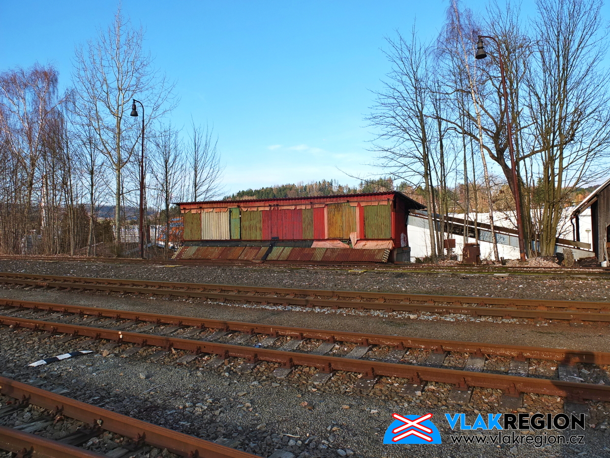 Stanice Nová Paka - na konci míří koleje do interiéru skladiště (2/2026)