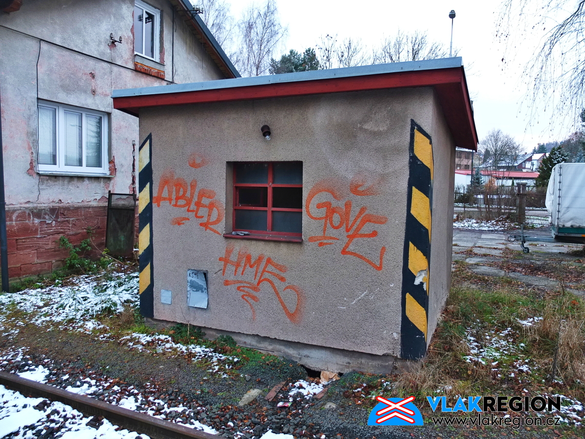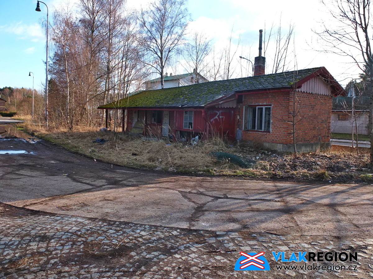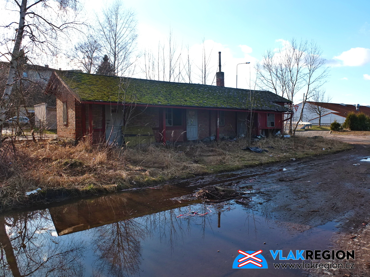 Stanice Nová Paka - na domek byl již vydán demoliční výměr, ale fyzicky byl zlikvidován až později (11/2021)