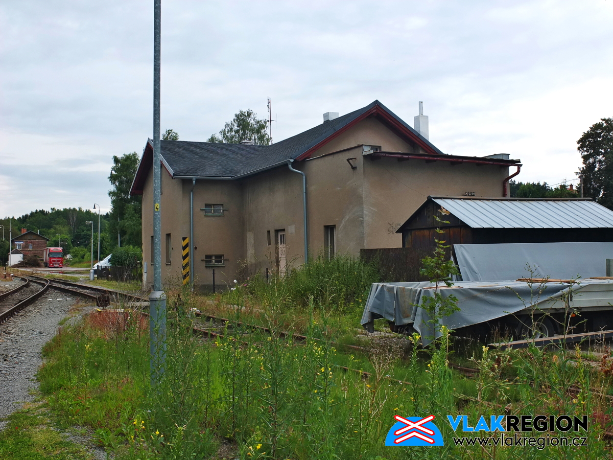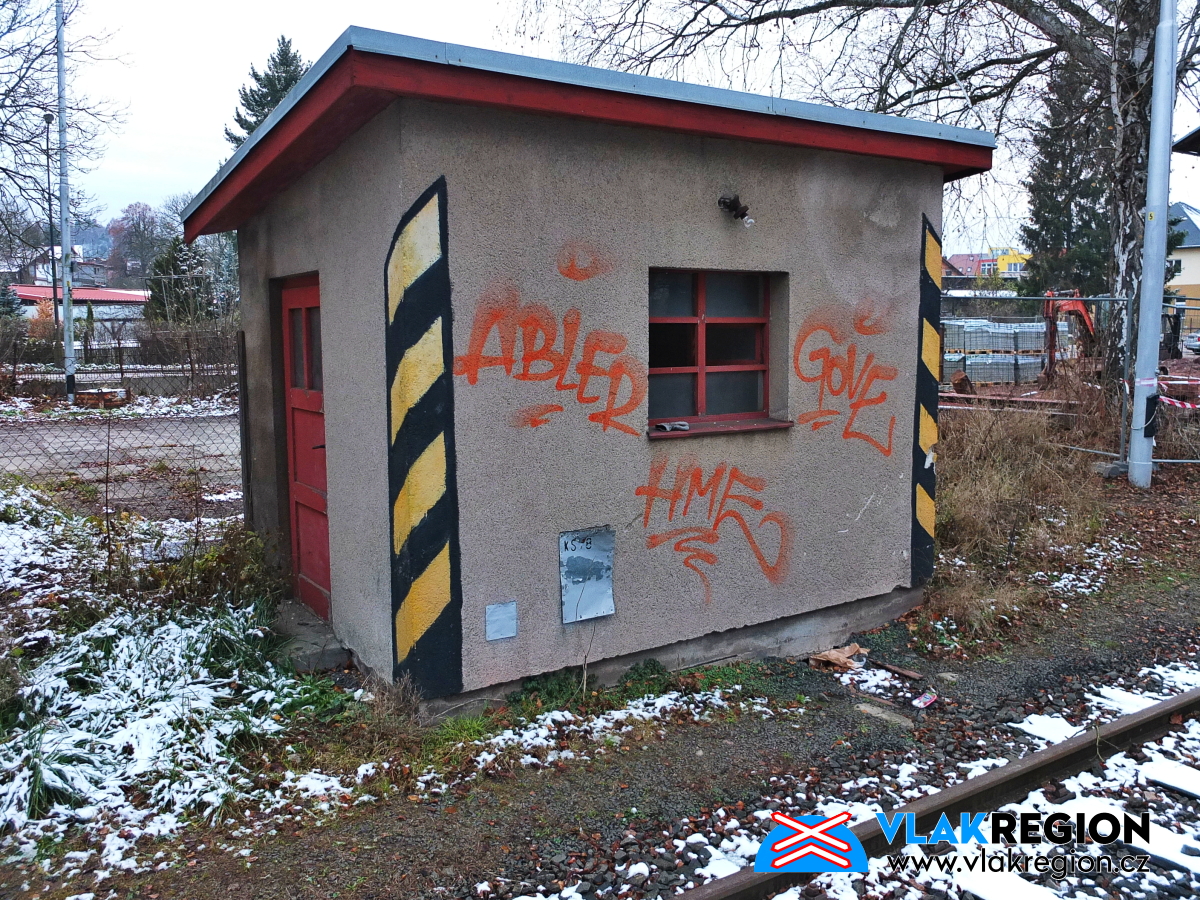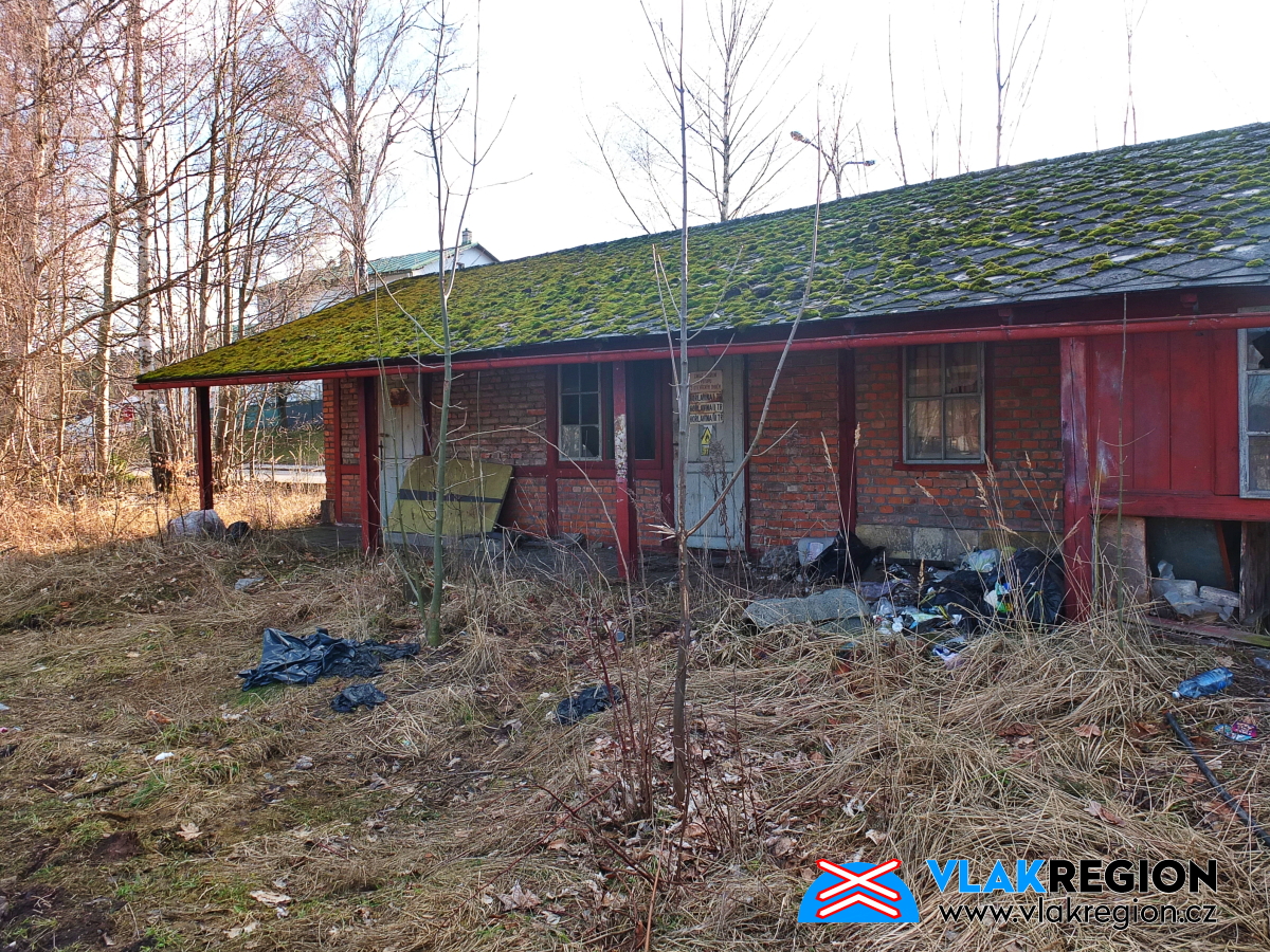 Stanice Nová Paka - na domek byl již vydán demoliční výměr, ale fyzicky byl zlikvidován až později (11/2021)