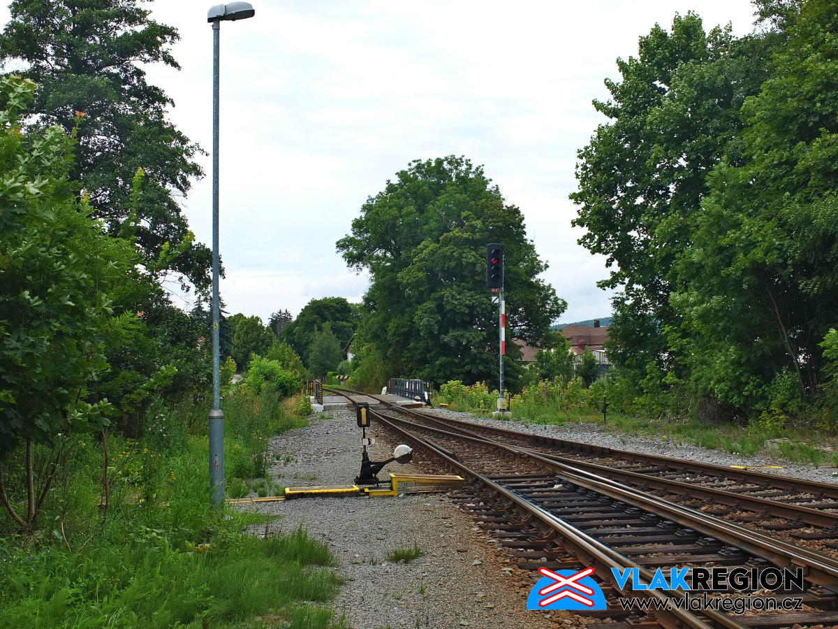 Stanice Nová Paka - skupinové světelné odjezdové návěstidlo je na zhlaví od roku 2012 (6/2017)