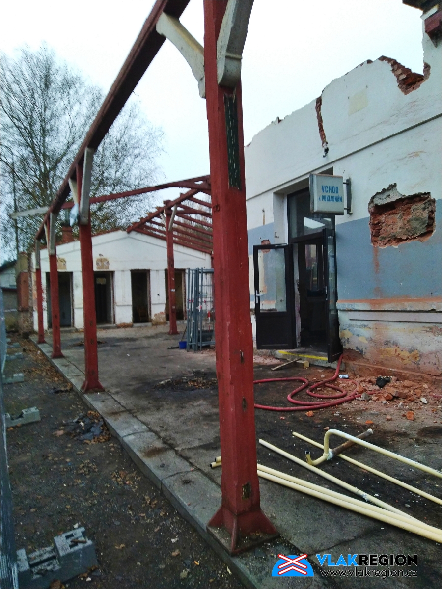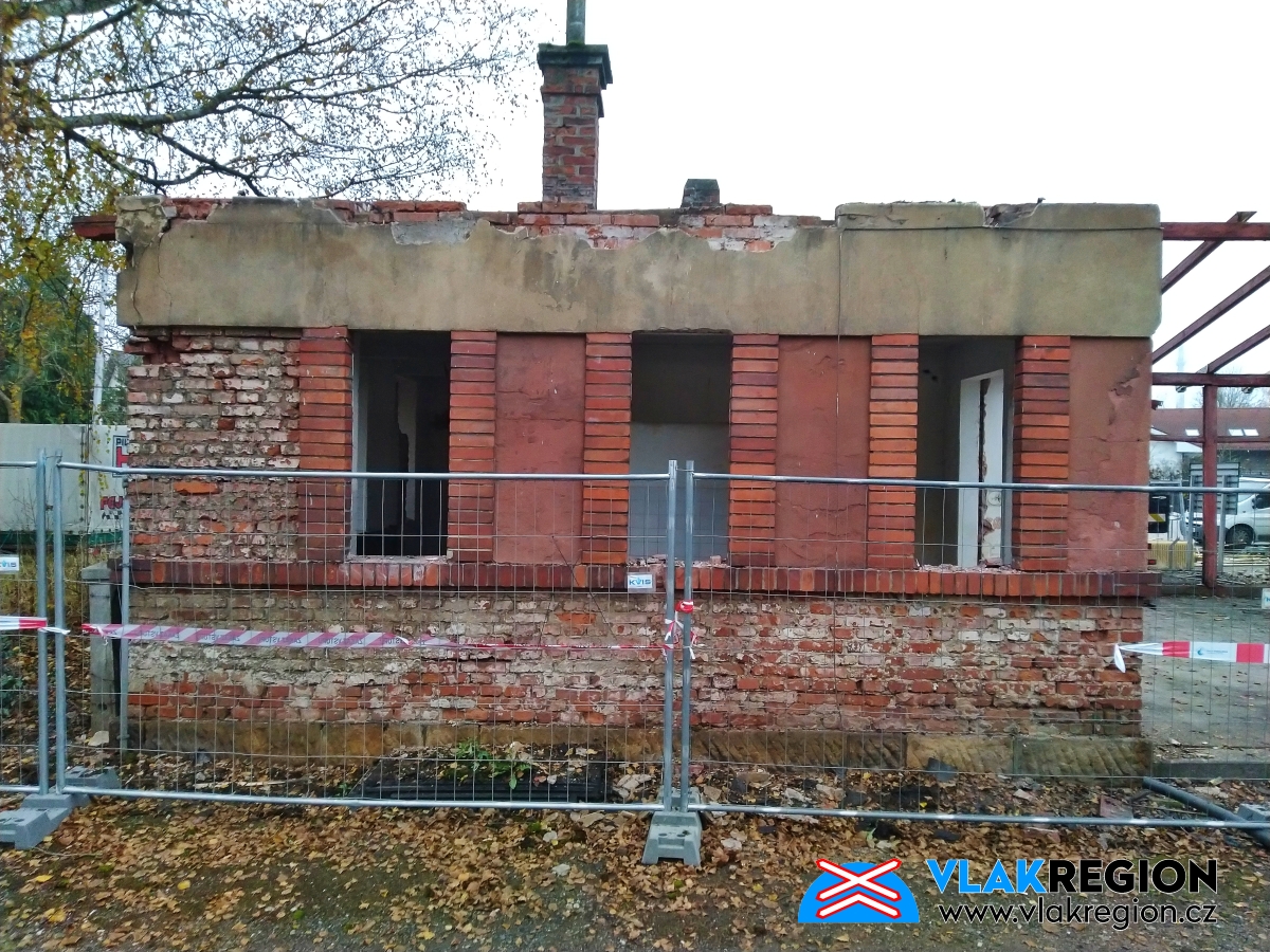 Stanice Nová Paka - demolice přístavby ze 30. let (11/2021)
