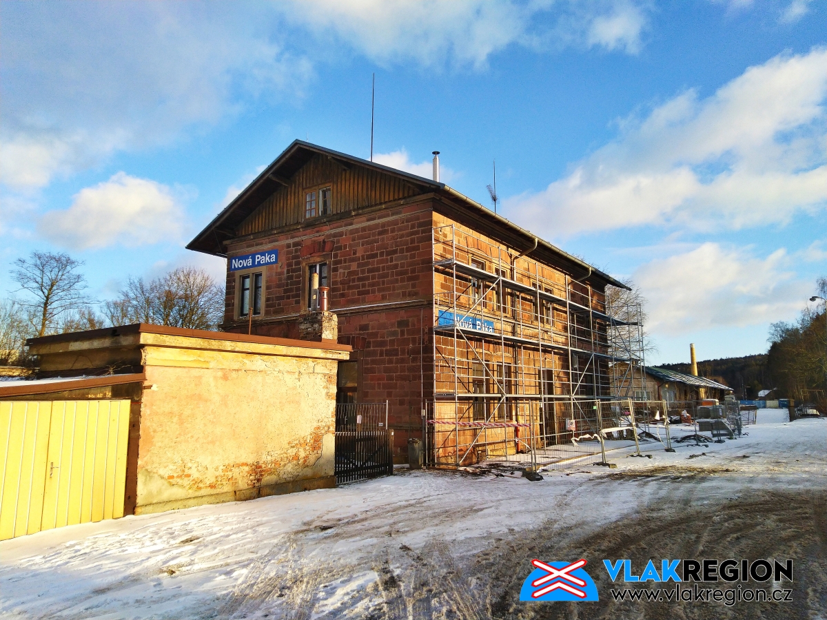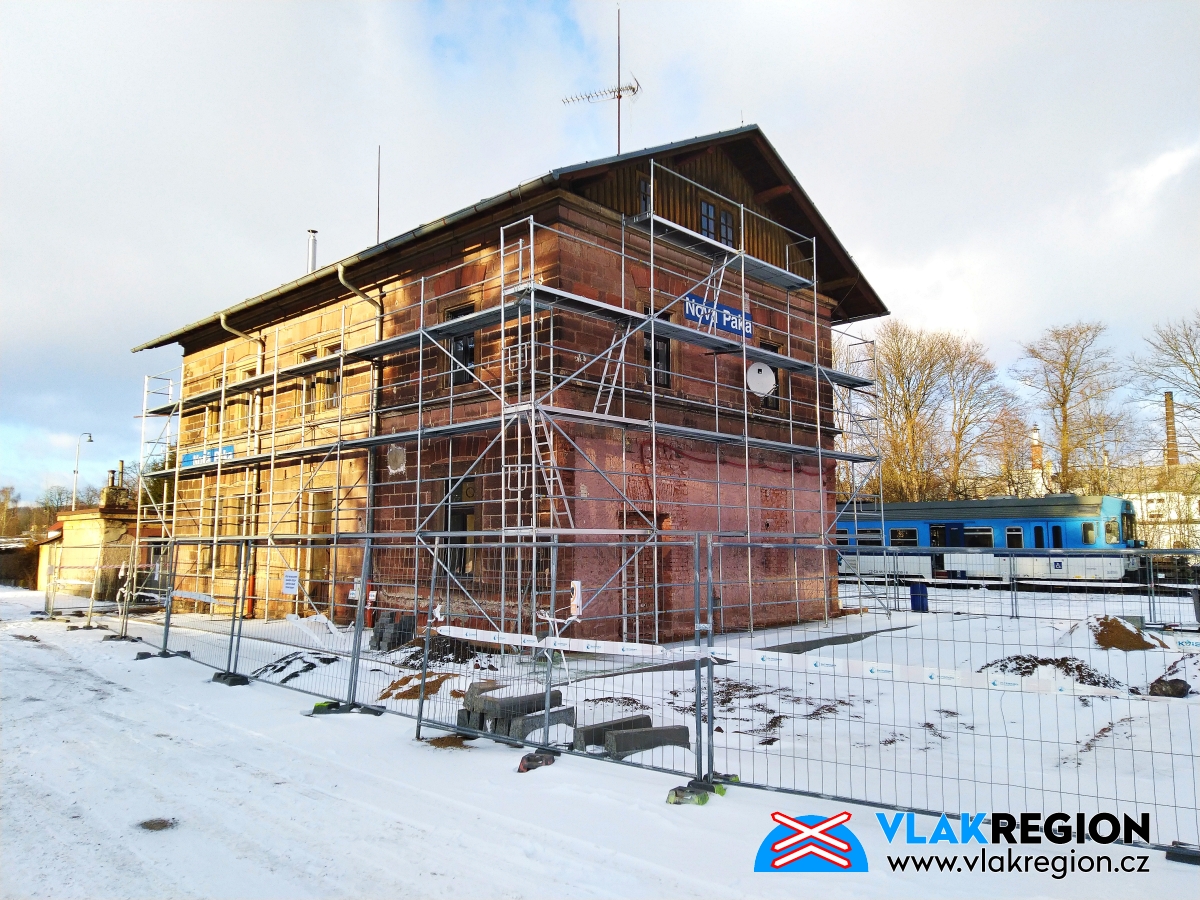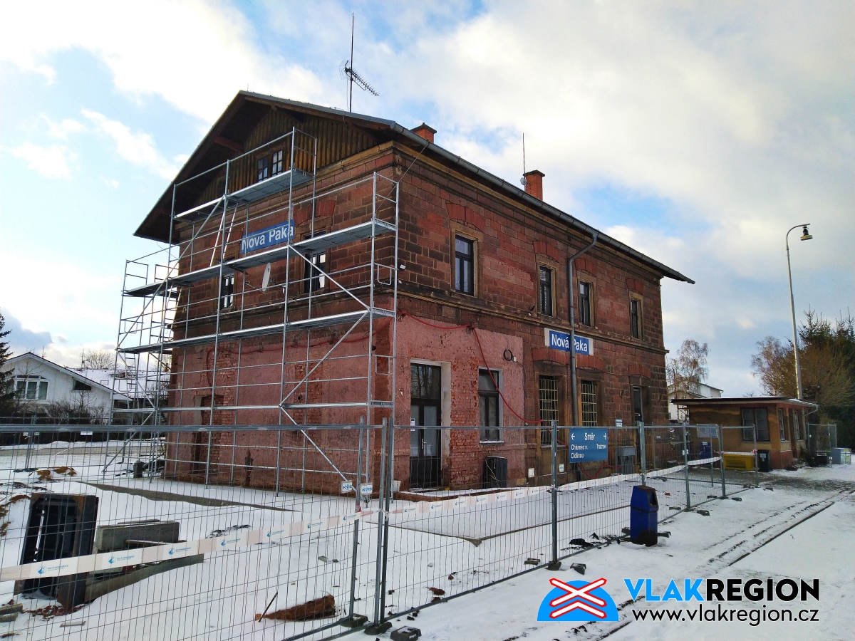 Stanice Nová Paka - již stojí lešení a fasáda se opravuje (1/2022)
