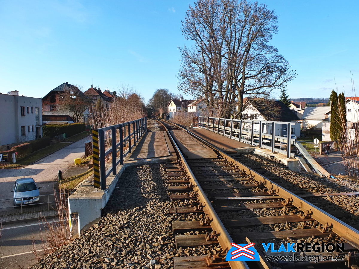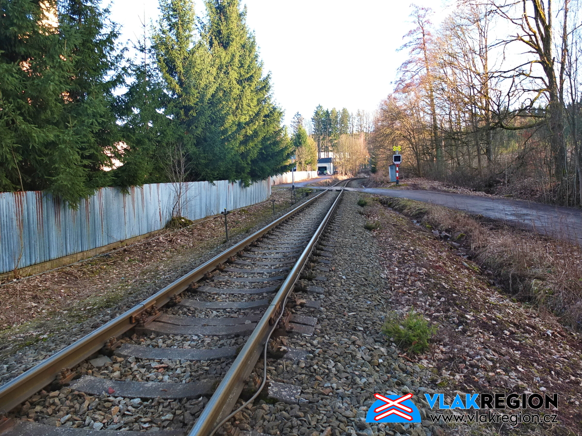 Stanice Nová Paka - přejezd stále ve výstraze, vlak jede od Ostroměře (2/2026)