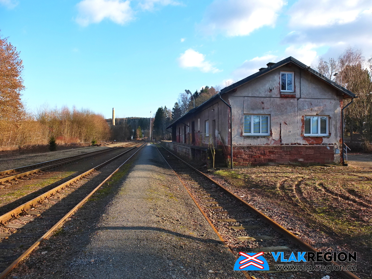 Krásně zrekonstruovaná výpravní budova (typu III.A) poskytuje cestujícím nejnutnější zázemí v podobě poměrně velké čekárny se spoustou laviček. Čekárna je umístěna v levé částí budovy a je z perónu přístupná nájezdovou rampou bezbariérově. Jízdenky se již ve stanici neprodávají od roku 2008, kdy byl na konci roku s přechodem na nový jízdní řád jejich prodej zastaven. Pro venkovní čekání slouží cestujícím zastřešená veranda umístěná podél celé čelní strany výpravní budovy. V pravé části nádražní budovy je umístěna dopravní kancelář pro výpravčího stanice. Za budovou stanice je menší parkoviště a u přístupového chodníku k perónu stojan na kola.