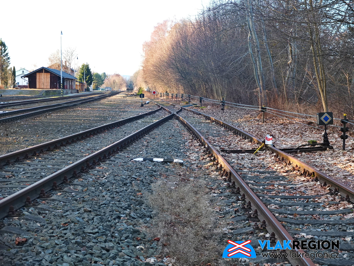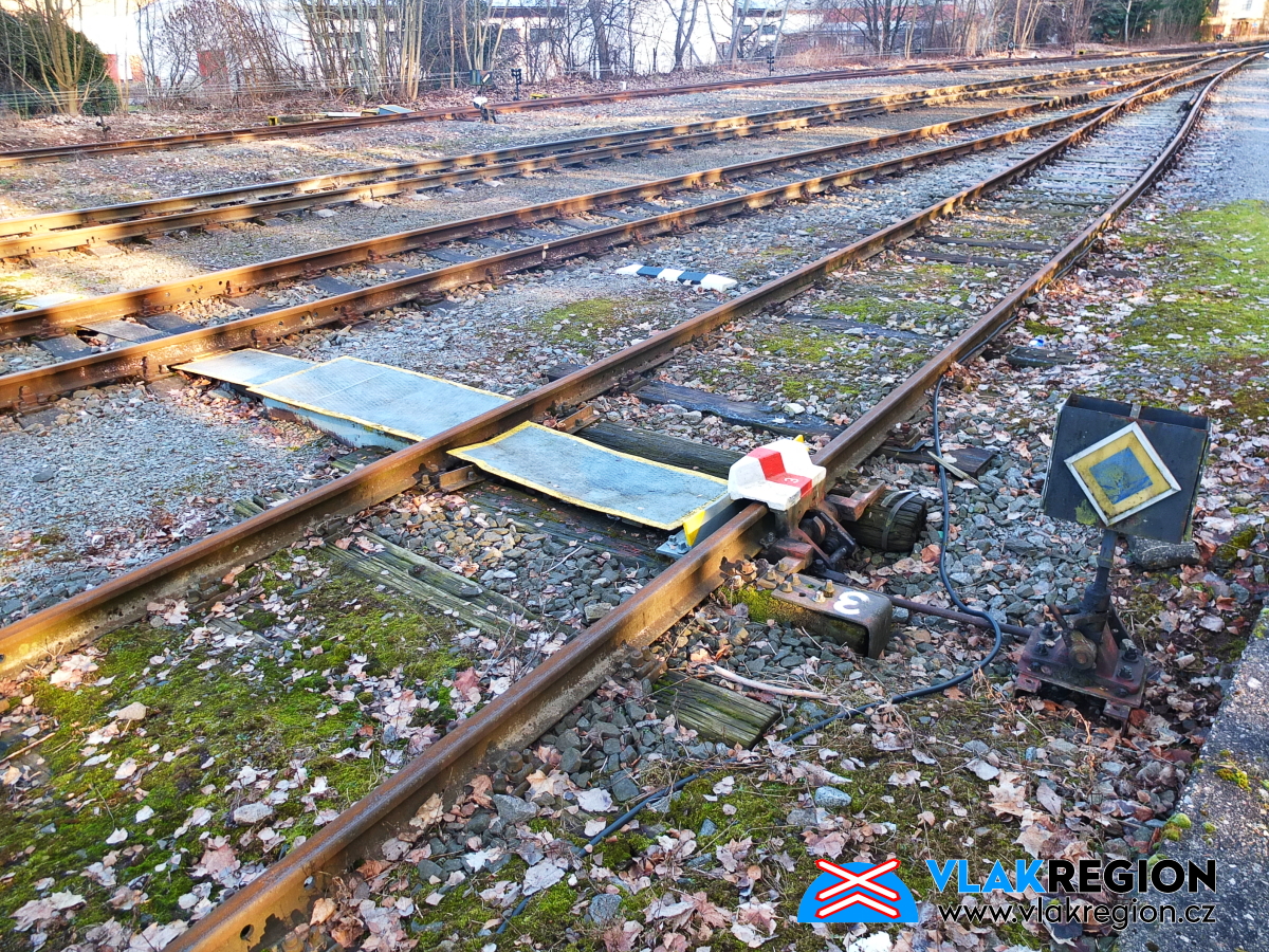 Stanice Nová Paka - výkolejka na zarostlé odstavné koleji (2/2026)