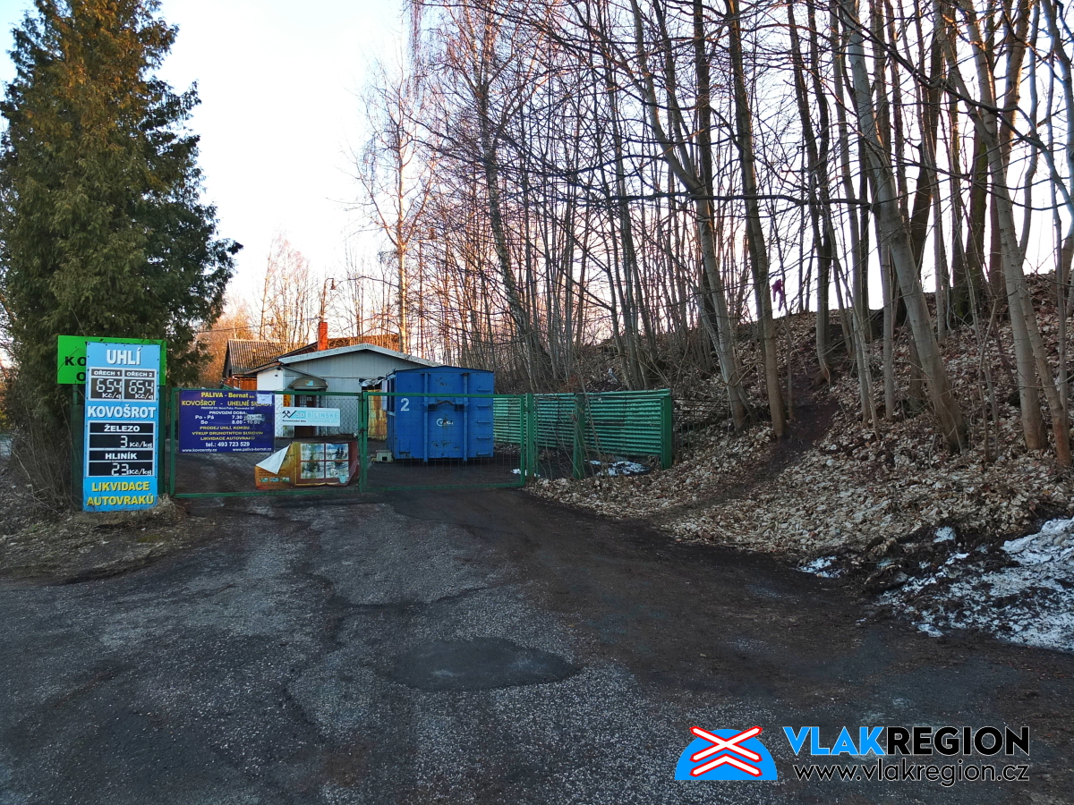 Stanice Nová Paka - příjezdová cesta k nákladišti u uhelky a k násypkám, dnes areál soukromé firmy (2/2026)