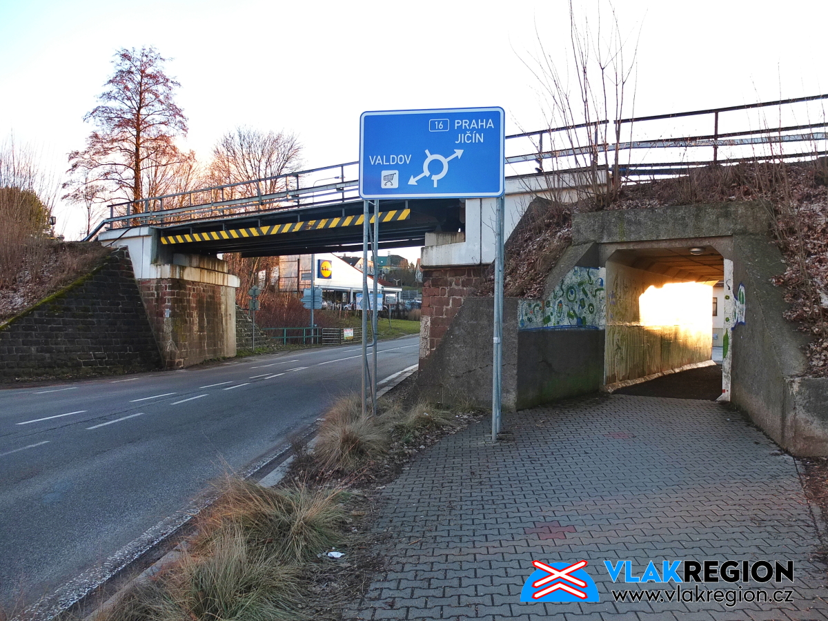 Stanice Nová Paka - most na staropacké straně, spoustakrát bouraný nákladními voz,y co se pod něj nevešly (dnes již funguje obchvat města) (2/2026)