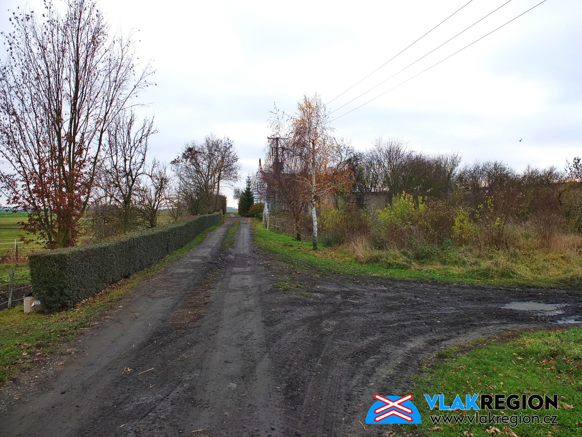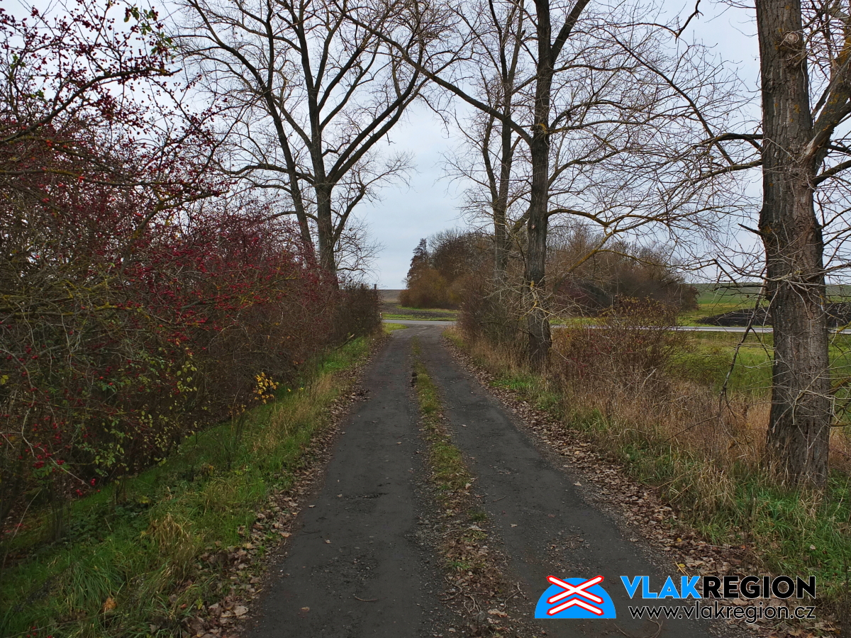 Vlečka Fachner - Podchotucký mlýn - cesta od křižovatky se silnicí Křinec - Oskořínek ke mlýnu (11/2025)