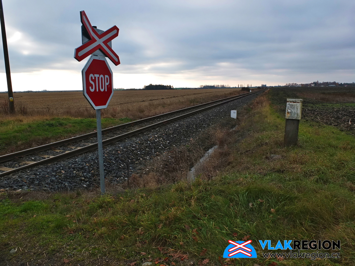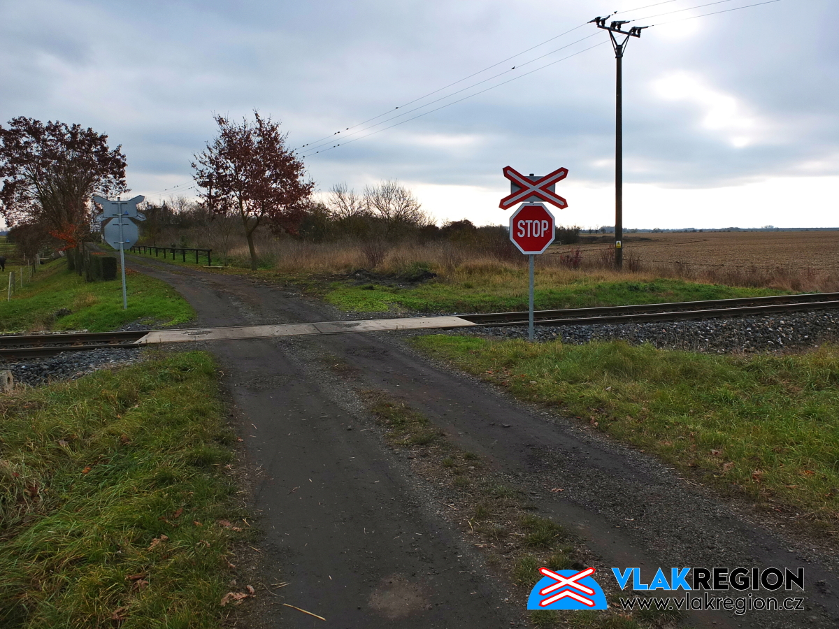 Vlečka Fachner - Podchotucký mlýn - přejezd na konci aleje (11/2025)