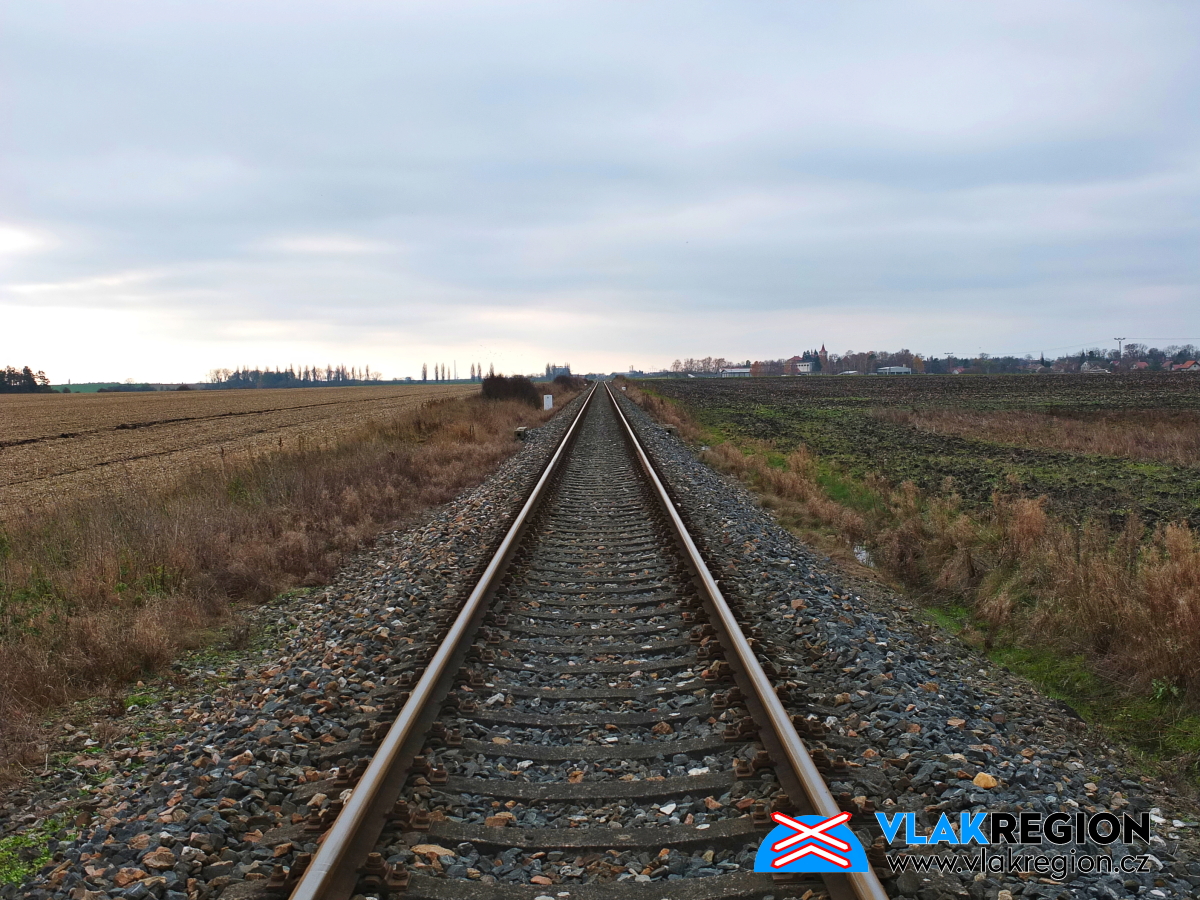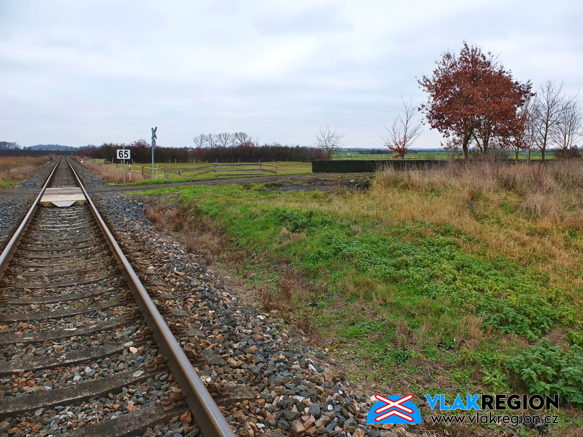 Vlečka Fachner - Podchotucký mlýn - v tomto směru vedla od obratiště cesta k mlýnu (11/2025)