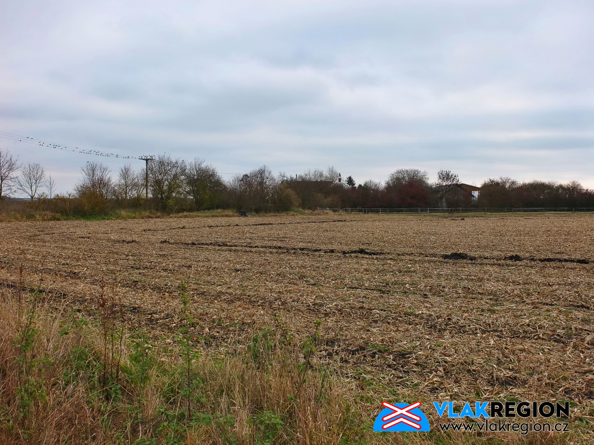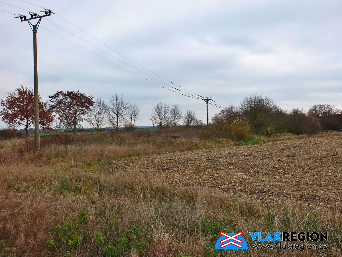 Vlečka Fachner - Podchotucký mlýn - místo kde bývalo obratiště a kde se nakládalo zboží - druhá cesta k mlýnu vedla částí pole a podél křovin (11/2025)
