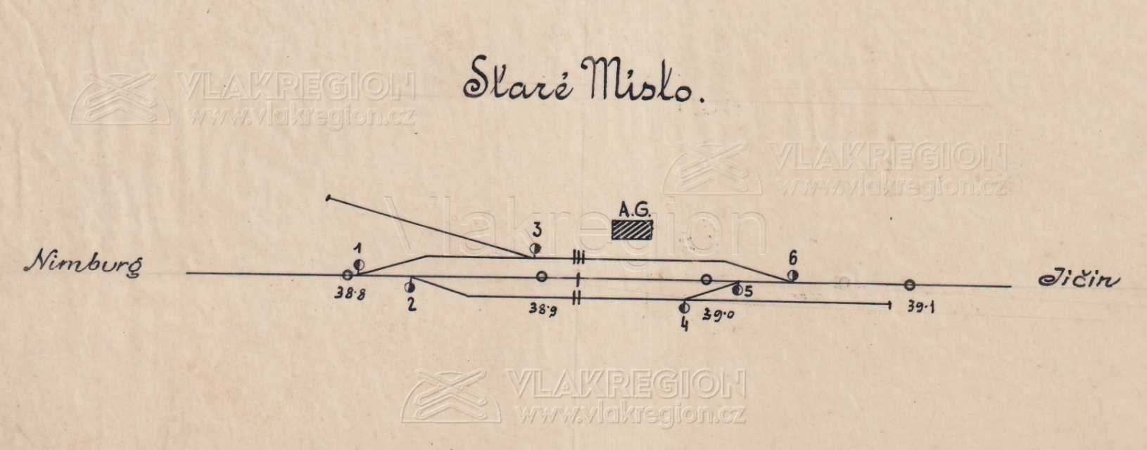 Dle mapy z roku 1910 měla stanice tři koleje bez odklonu osy a vlečku s kolejovou délkou 120 metrů. Kusá vlečková kolej vycházela na nymburské straně z třetí staniční koleje a její výměna byla umístěna na rohu 35 metrů dlouhé nákladištní rampy. Vlečka byla spolu s původním nákladištěm využívána hlavně pro nakládání cihel z nedaleké Šlikovy cihelny a samozřejmě také pro nakládku zemědělských plodin – hlavně pak cukrovarské řepy pro Šlikův kopidlenský cukrovar. Dle plánu také nalezneme na jičínské straně novou kusou (100 metrů dlouhou) odstavnou kolej, která vychází z druhé staniční koleje. Tato kolej byla v roce 1918 zrušena a druhá dopravní kolej, z které vycházela, byla později prodloužena ve směru ke Kopidlnu. Po válce v roce 1920 dostává původní název stanice nový přívlastek – od tohoto roku má současné jméno Staré Místo u Jičína.