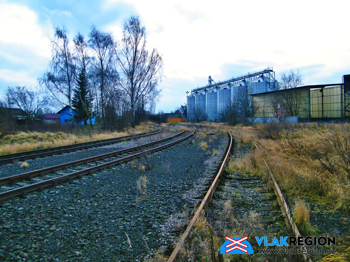 Staré Místo u Jičína - spojovací kolej míří k areálu obalovny (12/2011)