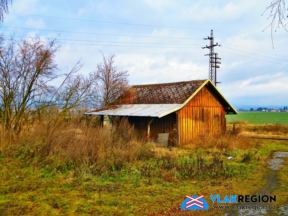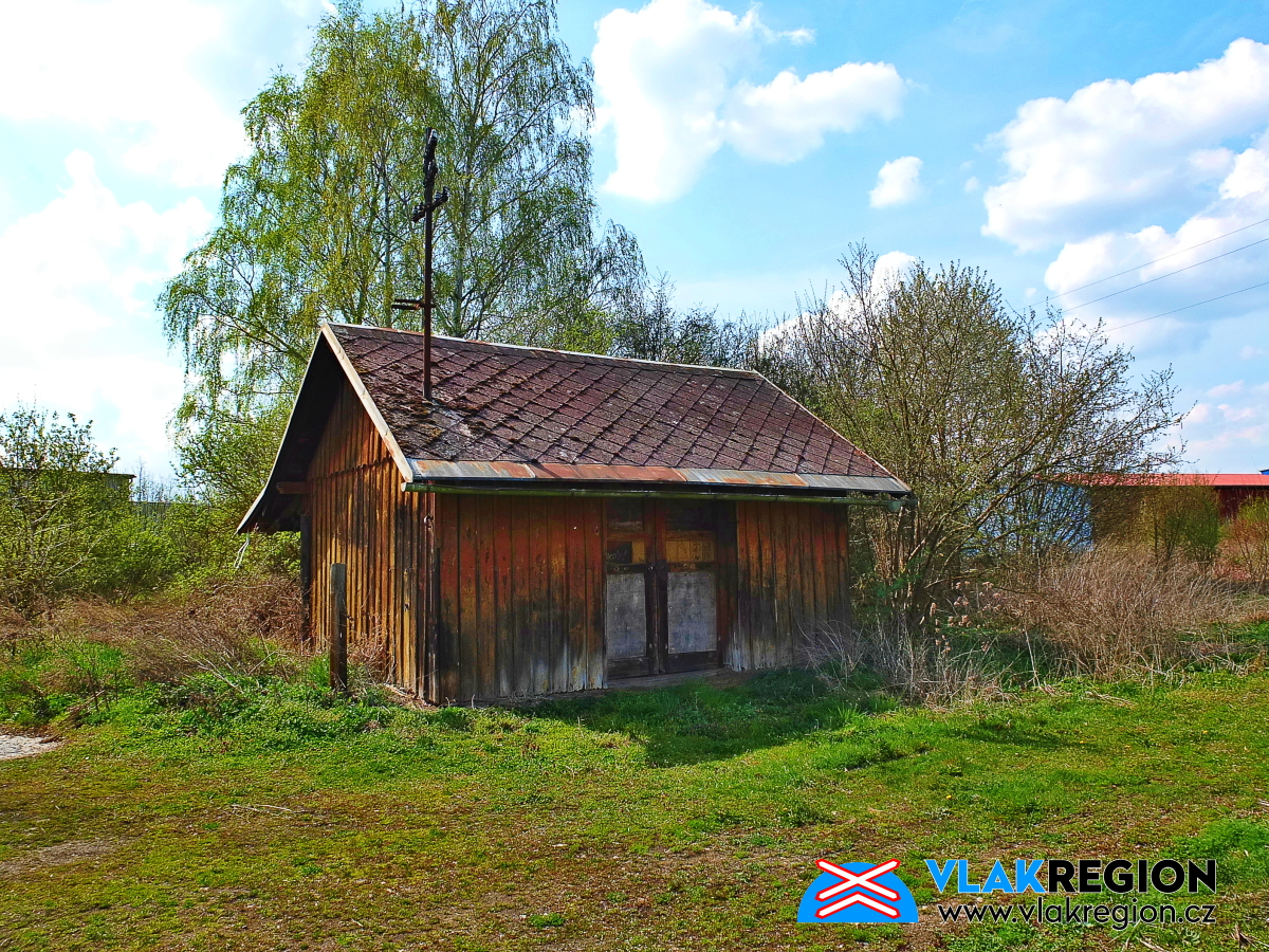 Staré Místo u Jičína - původní dřevěný sklad zůstává i po úpravě zastávky zachován (12/2011)