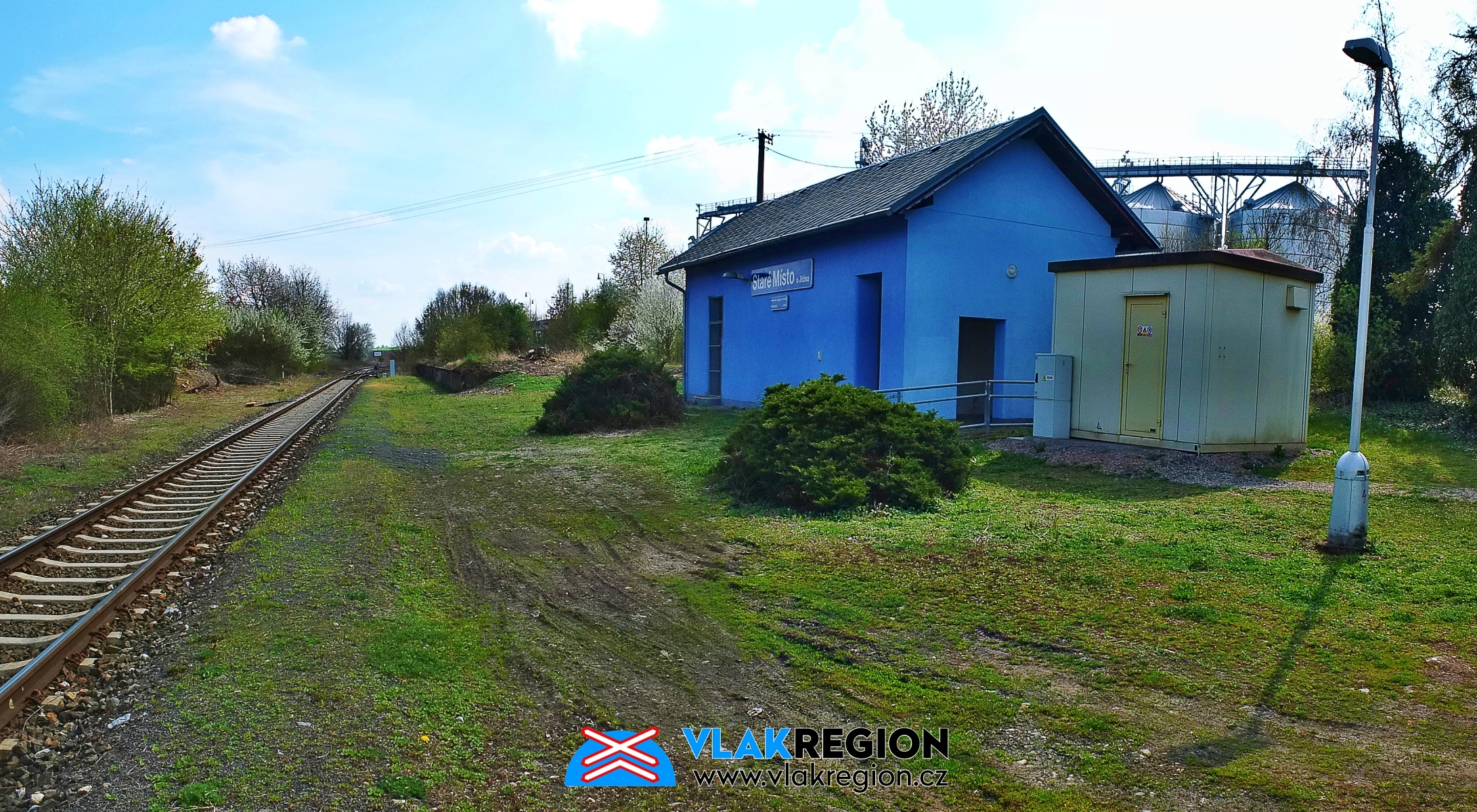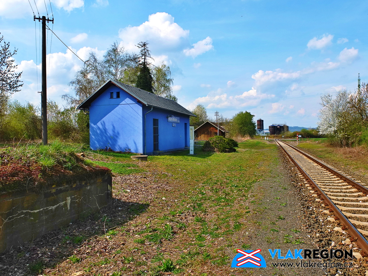 Staré Místo u Jičína - budova zastávky od přejezdu (4/2025)